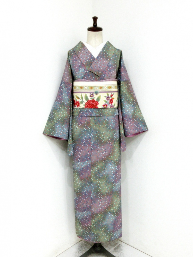 ■雅星■美品!!グリーングラデ*鹿の子♪洗える小紋 袷 裄65.5丈164ロング 販売価格 19,800円 (税込) 購入数 \送料無料/ カートに入れる この商品について問い合わせる お気に入り 特定商取引法に基づく表記 コーディネートで使用している商品 ★雅星本店オリジナル★新品!!アメジスト*シマシマ 銀通し 帯揚げ 正絹 【クリックポスト発送】 15,400円(税込) ★雅星本店オリジナル★新品*リバーシブル 縁あり三分紐【クリックポスト発送】 6,600円(税込) 商品詳細 状態ランク: ★★★★ グリーン〜紫のグラデーションベース、シンプルな鹿の子模様なので飽きが来ず楽しめる人気のデザインです。 綺麗目な正統派からカジュアルダウンまで、清潔感あふれる凛とした着こなしが楽しめる洗える小紋です。 天気を気にせずご自宅でお手入れが出来ます! 《袷・広衿》身長159〜169cm位までの方にオススメです。 目立つシミ・汚れの無い綺麗なお品です。 着物のみの価格で、帯・小物は含まれておりません。 サイズ・素材 裄 65.5cm 肩身丈 164cm 袖丈 49cm 袖幅 34cm 前幅 24cm 後ろ幅 30cm 内揚げ 0cm 縫込み(袖側) 2cm 縫込み(肩側) 1.5cm 素材 ポリエステル 状態ランクについて ★★★★★ 超美品・新品・未使用品です。 ★★★★ 中古品ですがダメージの無いお品です。 ★★★ 薄ジミなどがありますが着用時には目立ちません。 ★★ 工夫次第で十分着用可能なお買い得品です ★ 大きめのシミがありますので、リメイク材料等にどうぞ。