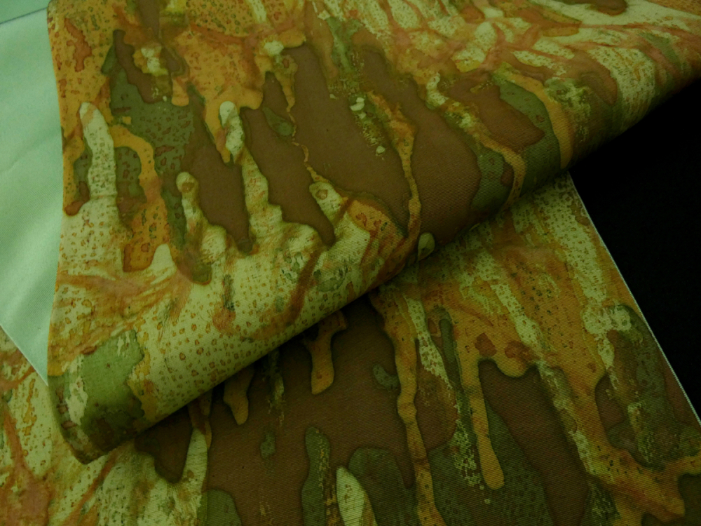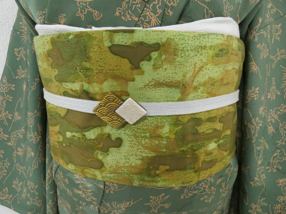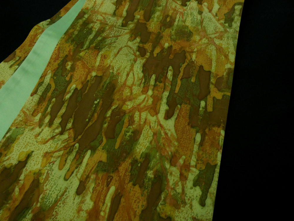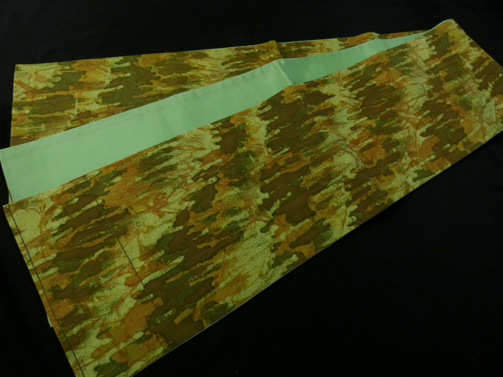 ◆雅星◆未使用超美!!黄緑×茶*アーティ 正絹全通 染め《洒落袋帯》