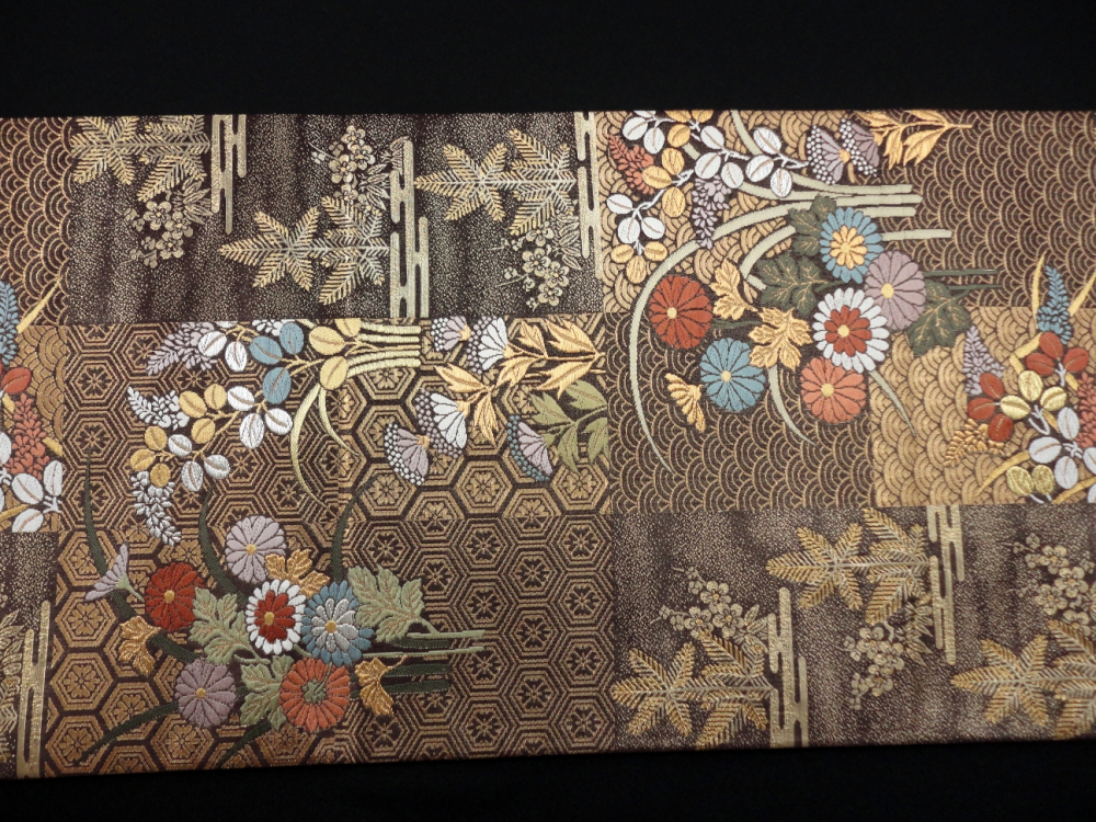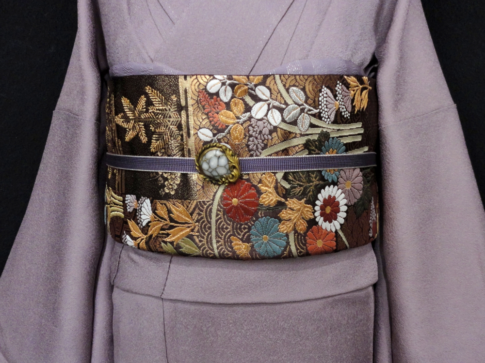 ○雅星○超美!!ブラウン×ゴールド*唐織 格子 青海波 亀甲文♪正絹六通《袋帯》 販売価格 36,800円 (税込) 購入数 \送料無料/ カートに入れる この商品について問い合わせる お気に入り 特定商取引法に基づく表記 商品詳細 状態ランク: ★★★★★ 落ち着いた色味のブラウン系に金糸の煌めく青海波や花菱亀甲文がフォーマルシーンに華やかさを添えてくれます。 唐織の菊などの花模様が上品にあしらわれた高級感あふれるデザイン。 見た目の重厚感とは反して軽くしなやかで大変締めやすく、品格ある意匠はお茶席等にぴったり。 フォーマルシーンから上質な小紋まで幅広くお楽しみ頂ける上質な袋帯です。 人と差のつくワンランク上の着こなしにぜひ! 目立つシミ汚れのない綺麗なお品物です◎ 帯のみの価格で、着物・小物は含まれておりません。 サイズ・素材 長さ 31.5cm×448cm 素材 正絹 状態ランクについて ★★★★★ 超美品・新品・未使用品です。 ★★★★ 中古品ですがダメージの無いお品です。 ★★★ 薄ジミなどがありますが着用時には目立ちません。 ★★ 工夫次第で十分着用可能なお買い得品です ★ 大きめのシミがありますので、リメイク材料等にどうぞ。 _fo