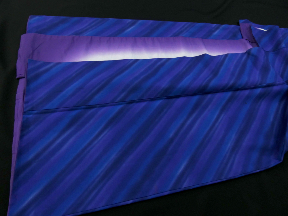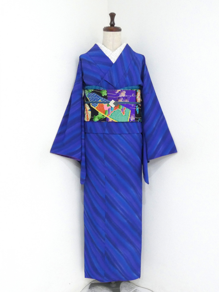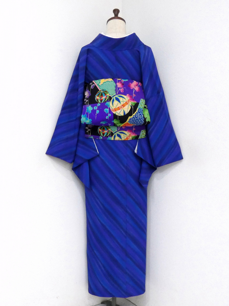 濃いブルーベースにグラデーションの斜め縞が染められています。