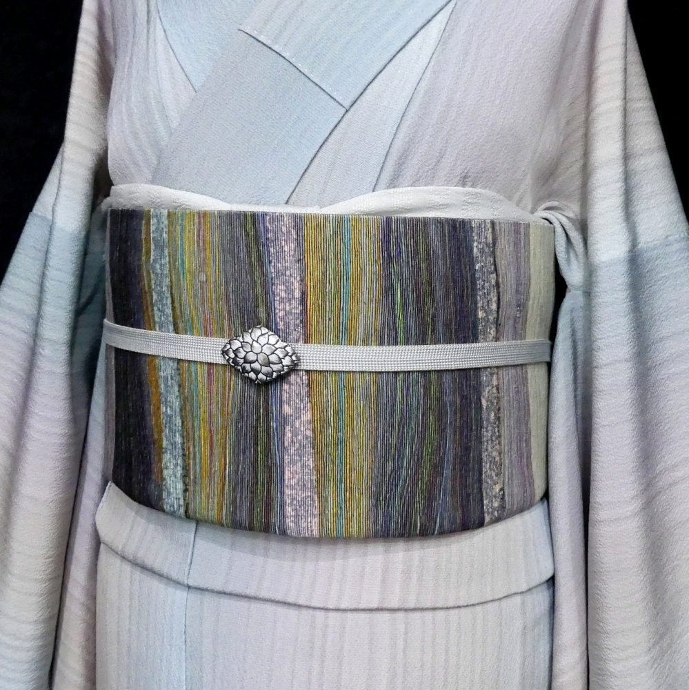 〓雅星〓未使用超美!!豆がら茶色*紬地 作家物 アーティ♪正絹染め《洒落袋帯》 販売価格 34,800円 (税込) 購入数 \送料無料/ カートに入れる この商品について問い合わせる お気に入り 特定商取引法に基づく表記 商品詳細 状態ランク: ★★★★★ くすんだ緑色ベース、紬のような節があり横段状に立体感のある変わり織地。 サンドアートのような重なり合う抽象柄が幻想的な印象です。 織り地ですが薄手でしなやかなので軽い締め心地。 綺麗目な正統派からカジュアルスタイルまで振り幅広めに楽しめる洒落袋帯です。 目立つシミ・汚れのない未使用超美のお品です。 帯のみの価格で、着物・小物は含まれておりません。 サイズ・素材 長さ 31cm×462cm 素材 正絹 状態ランクについて ★★★★★ 超美品・新品・未使用品です。 ★★★★ 中古品ですがダメージの無いお品です。 ★★★ 薄ジミなどがありますが着用時には目立ちません。 ★★ 工夫次第で十分着用可能なお買い得品です ★ 大きめのシミがありますので、リメイク材料等にどうぞ。