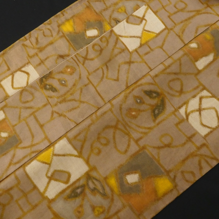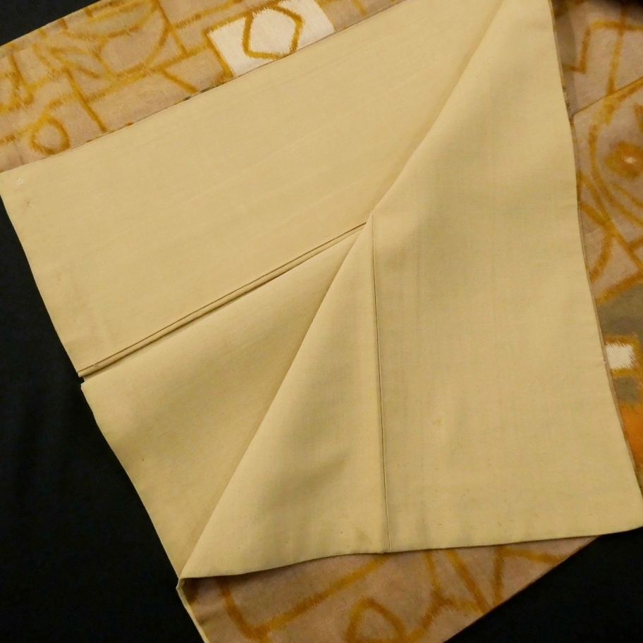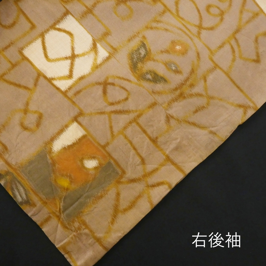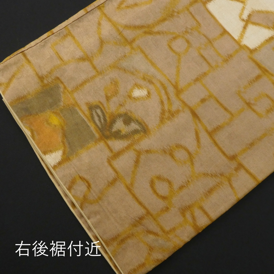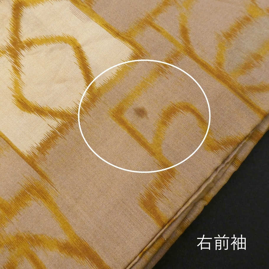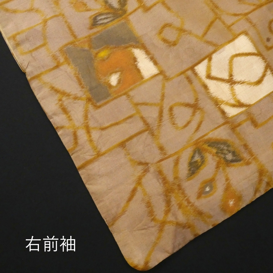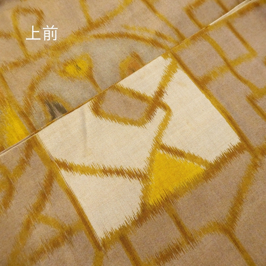 〓雅星〓レトロ!!ベージュ*スクエア アーティ♪銘仙 正絹袷 裄62丈146