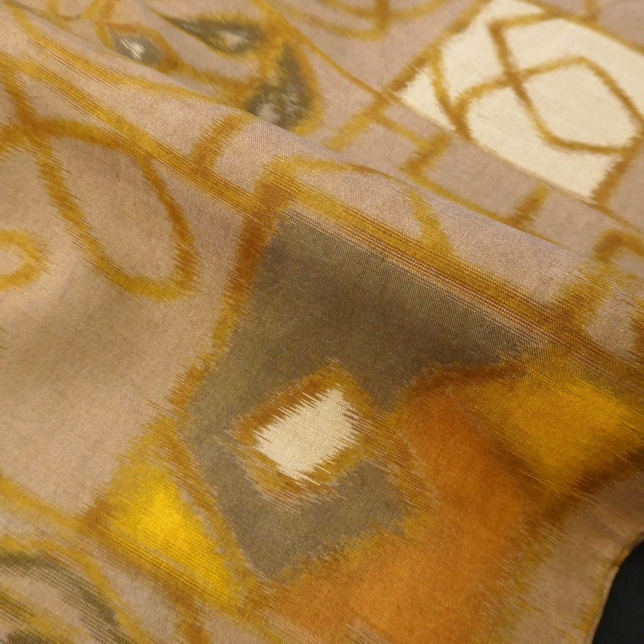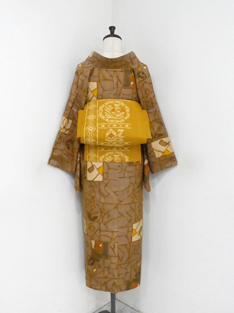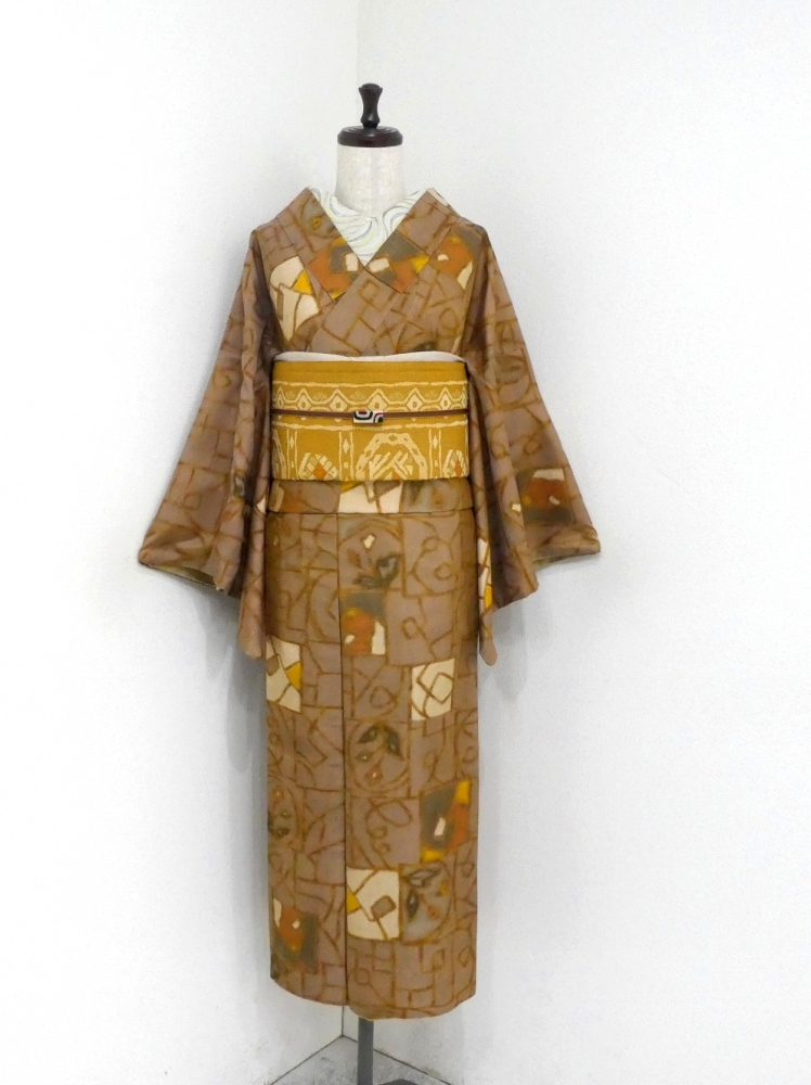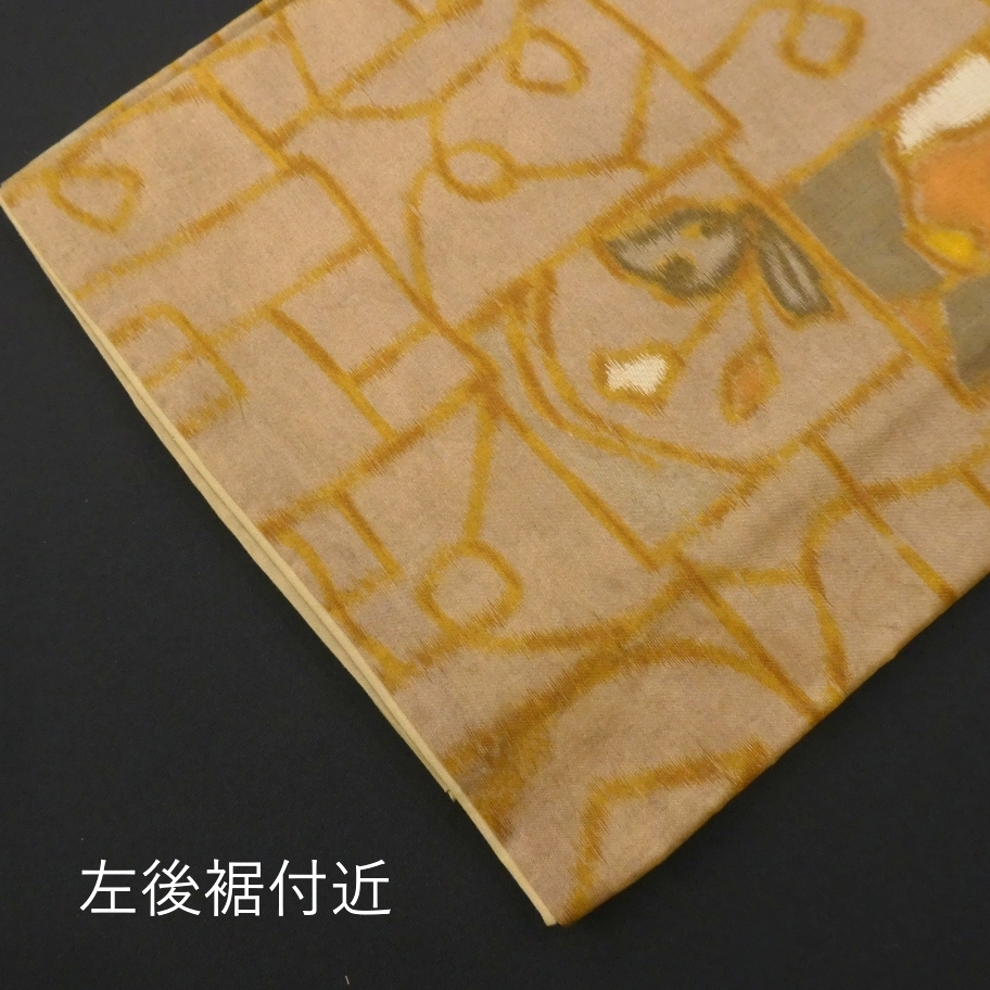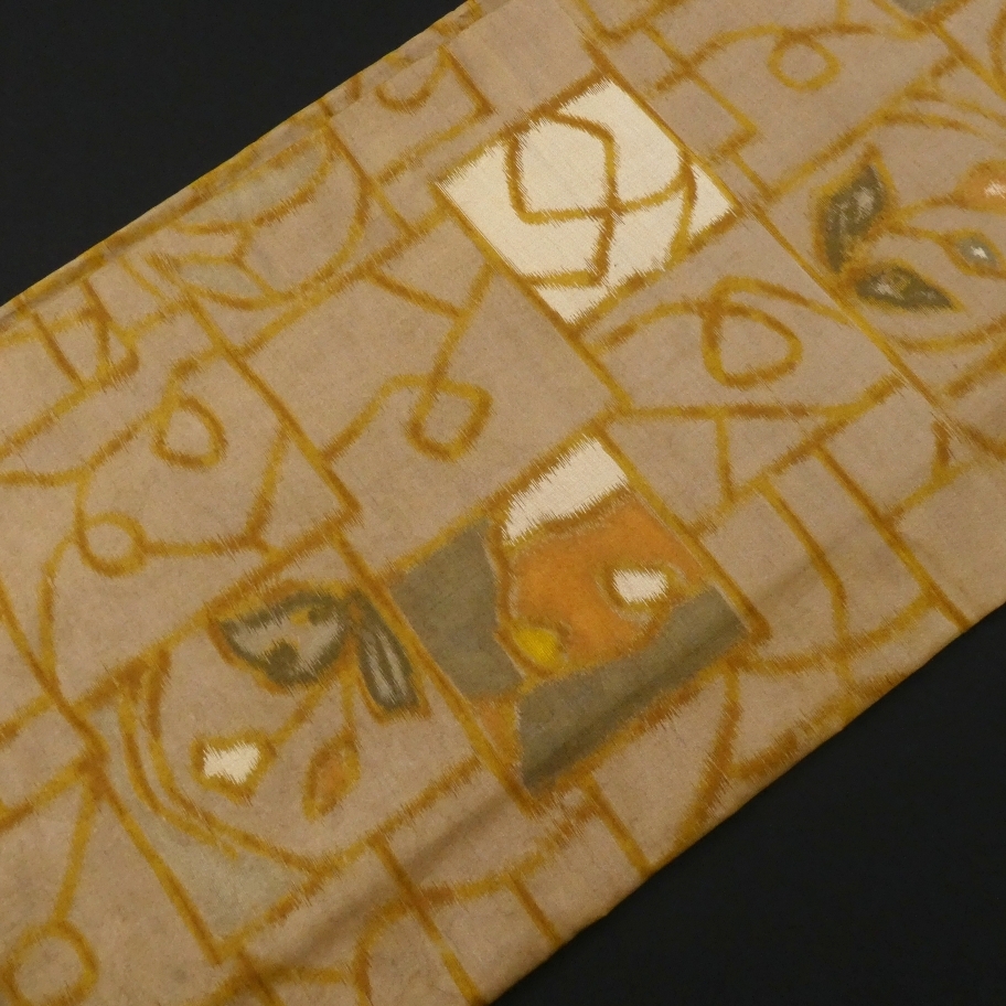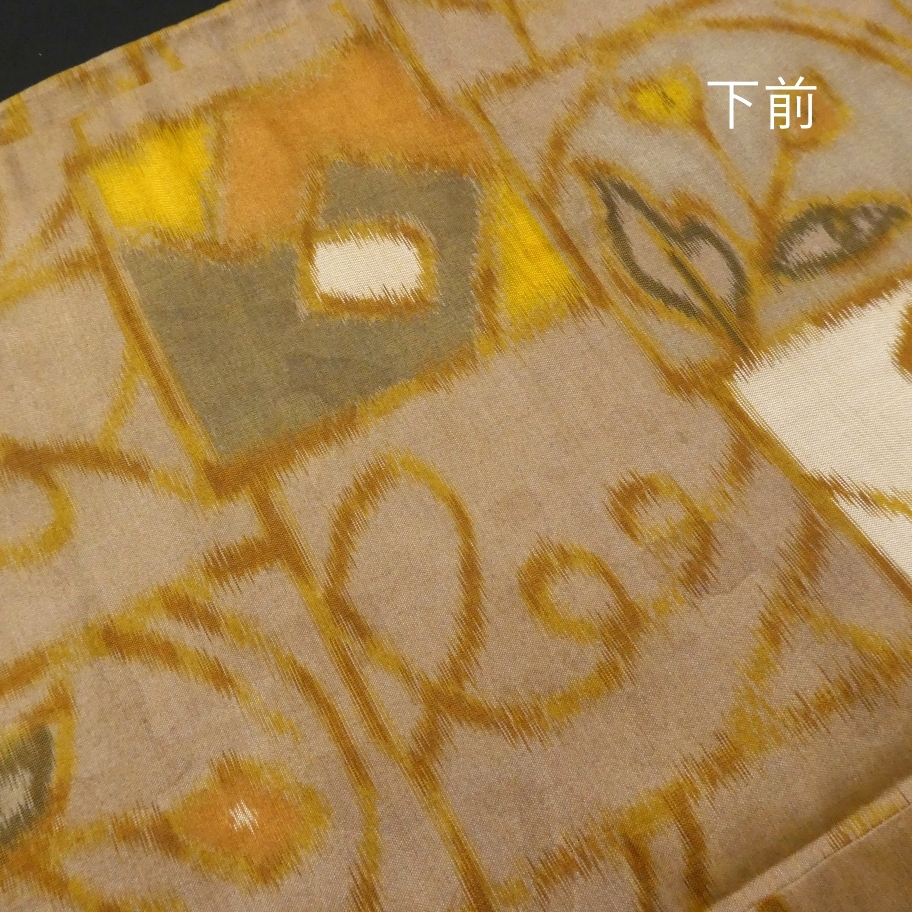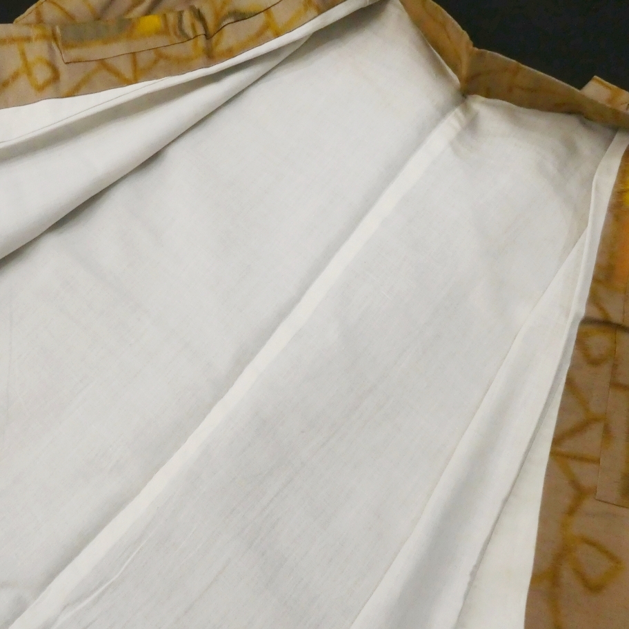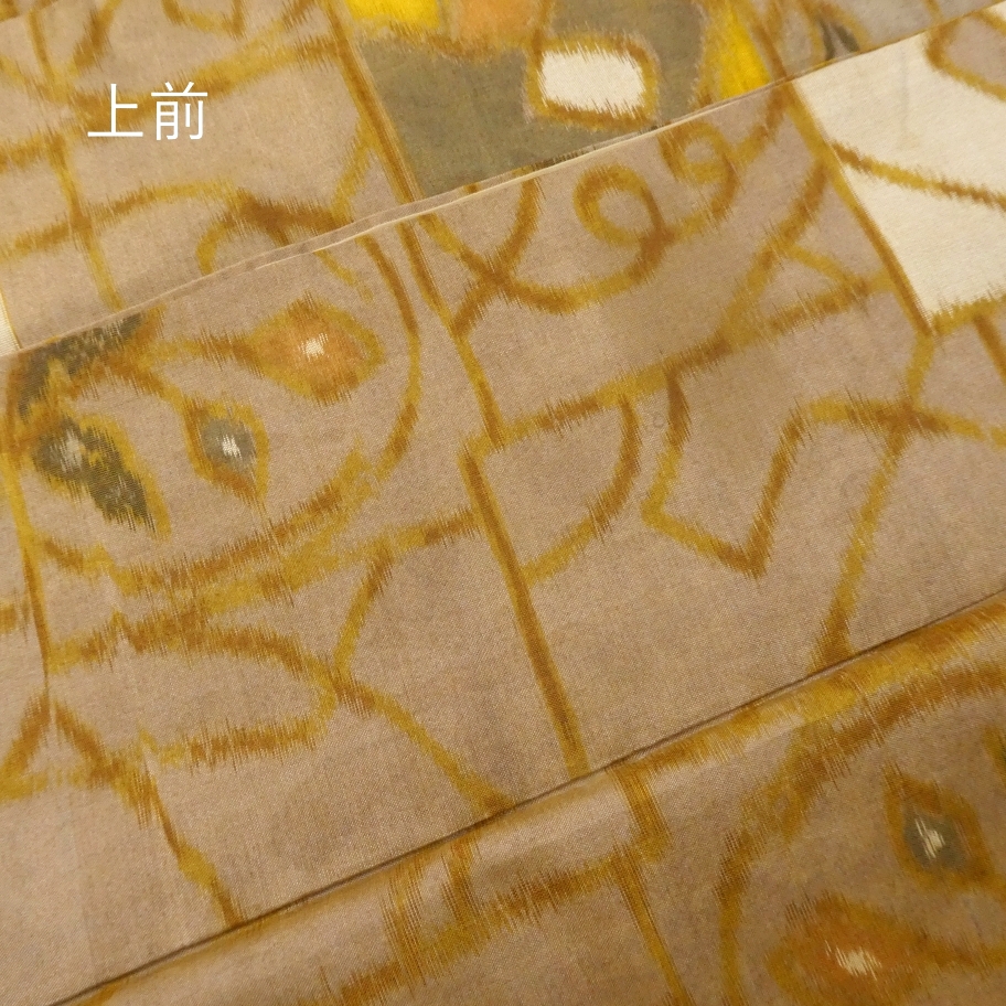 〓雅星〓レトロ!!ベージュ*スクエア アーティ♪銘仙 正絹袷 裄62丈146