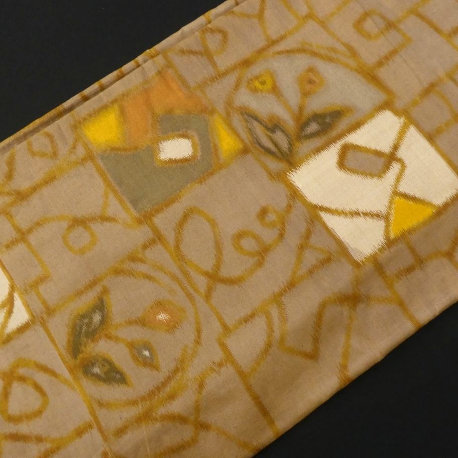 ベージュ地にスクエアや曲線などがあしらわれた抽象文がレトロ可愛い♪
