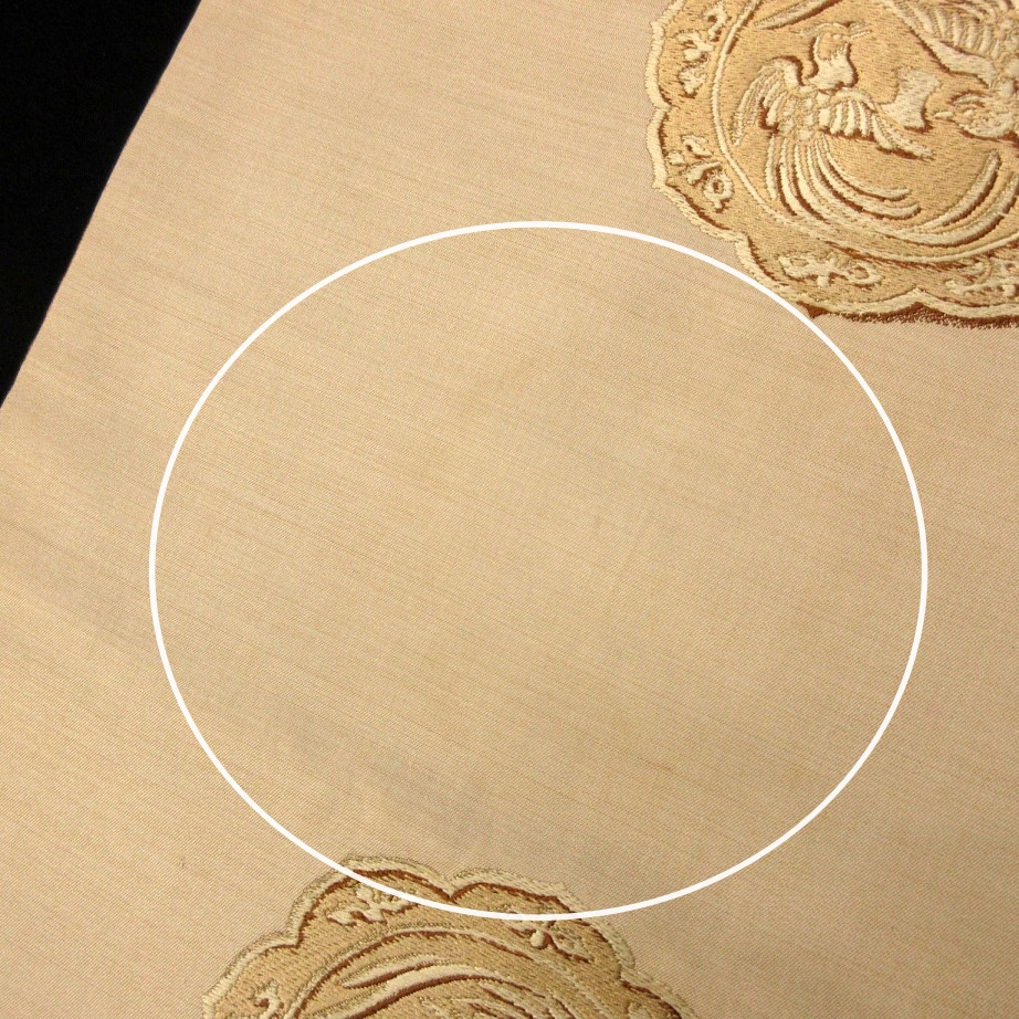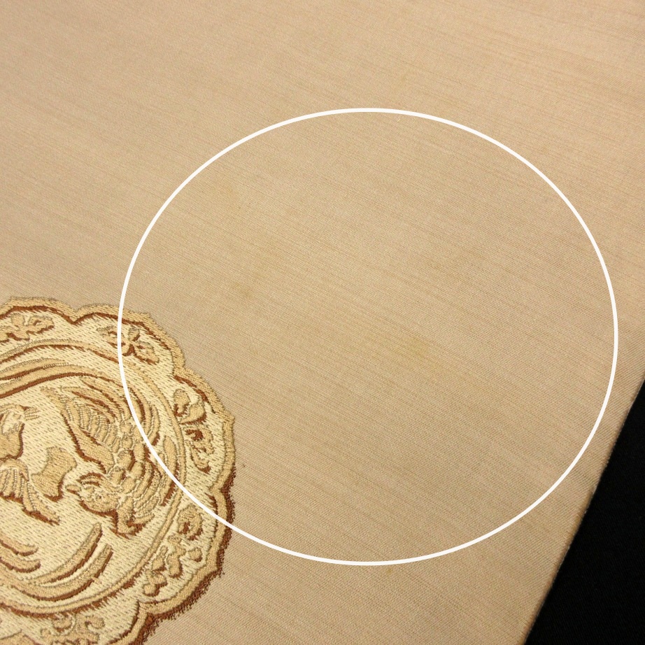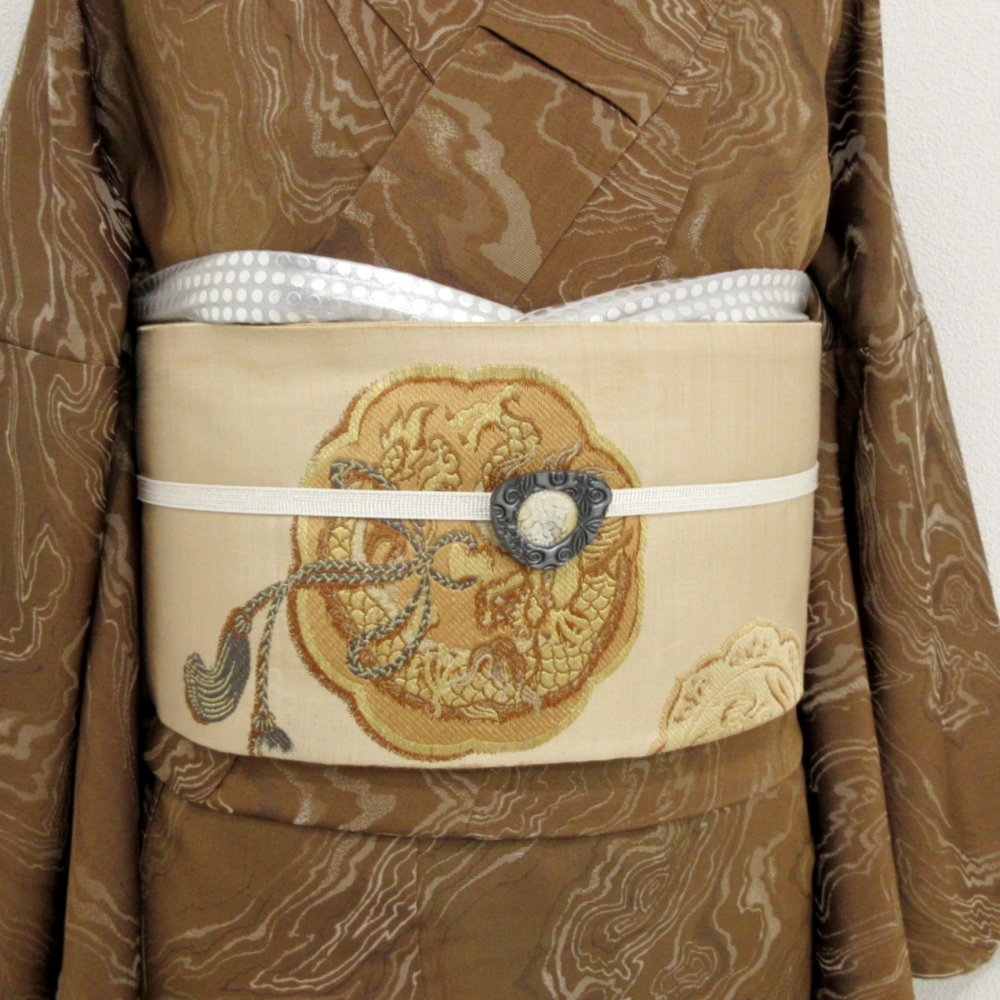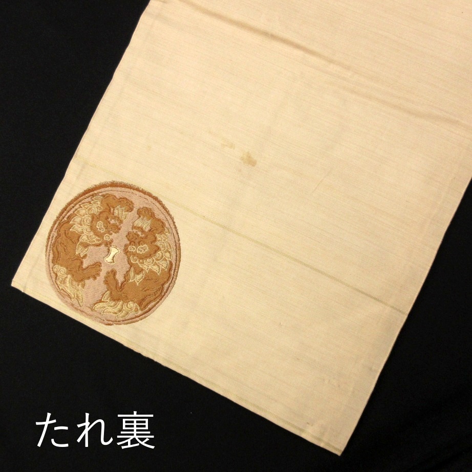 ■雅星■アンティーク!!ベージュ*鏡裏文 龍 唐獅子 鳳凰♪正絹九寸《名古屋帯》 販売価格 19,800円 (税込) 購入数 \送料無料/ カートに入れる この商品について問い合わせる お気に入り 特定商取引法に基づく表記 商品詳細 状態ランク: ★★★ ベージュベースに龍・唐獅子・鳳凰の鏡裏文。 色味が抑えてありますので大人の女性にもおススメです。 スタイリングのアクセントにも最適ですし、現代のお着物と合わせると一気にこなれた印象に◎ 帯が主役のコーデも楽しめるアンティークの九寸名古屋帯です。 たれ裏にシミ・所々に軽いくすみが見られますが、着後に酷く目立つような濃く大きなダメージはありません。 手先の生地が裂けていますが問題なくお使い頂けます。 ぐっとお値下げしていますので、時代物に慣れた方・色柄を気に入って下さった方に是非♪ 帯のみの価格で、着物・小物は含まれておりません。 サイズ・素材 長さ 31.5cm×350cm 素材 正絹 状態ランクについて ★★★★★ 超美品・新品・未使用品です。 ★★★★ 中古品ですがダメージの無いお品です。 ★★★ 薄ジミなどがありますが着用時には目立ちません。 ★★ 工夫次第で十分着用可能なお買い得品です ★ 大きめのシミがありますので、リメイク材料等にどうぞ。 _an