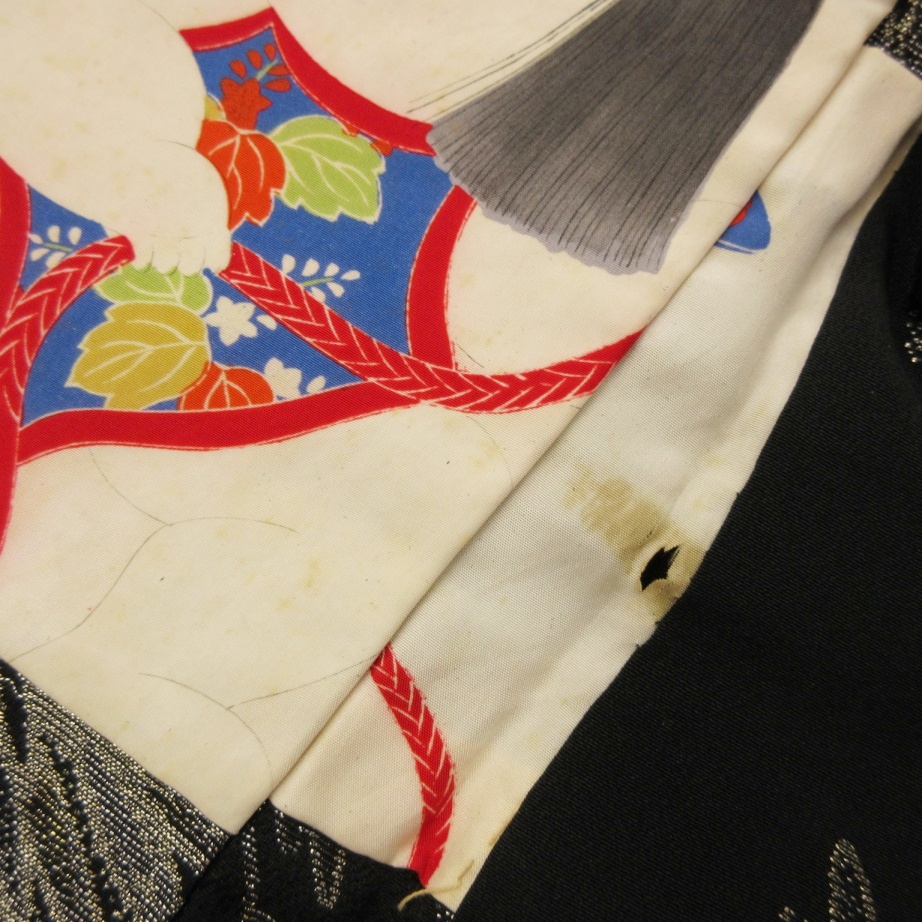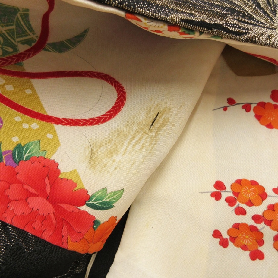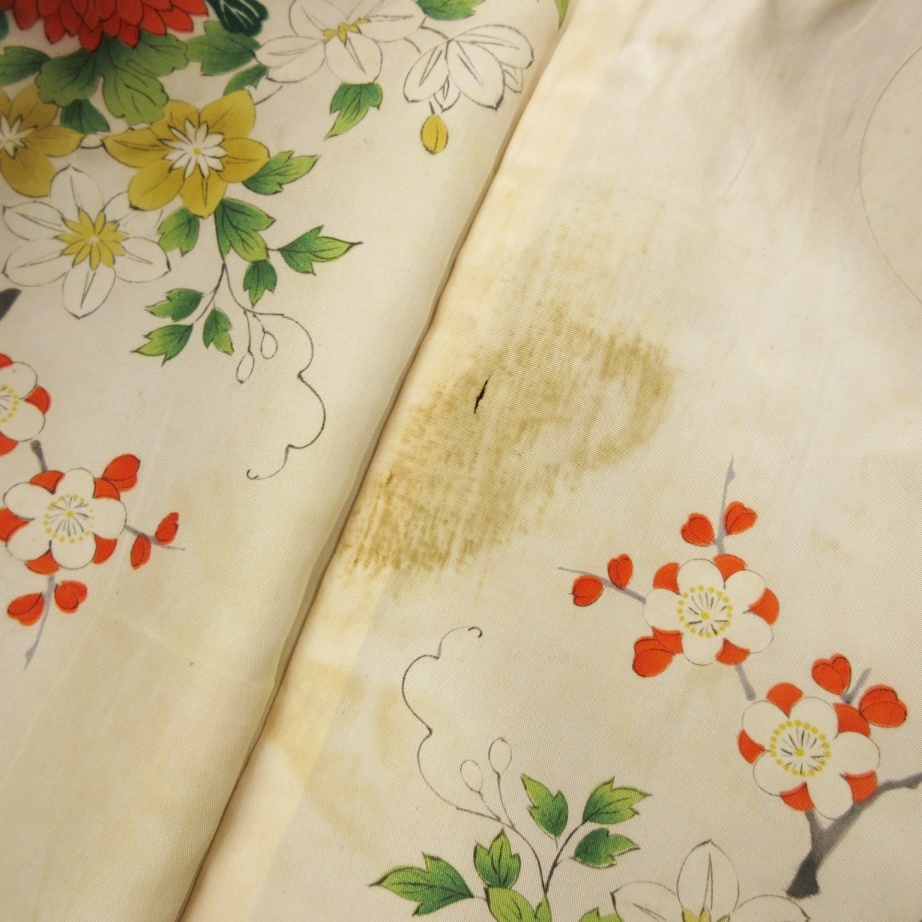 大きめのシミがありますので、リメイク材料等にどうぞ。