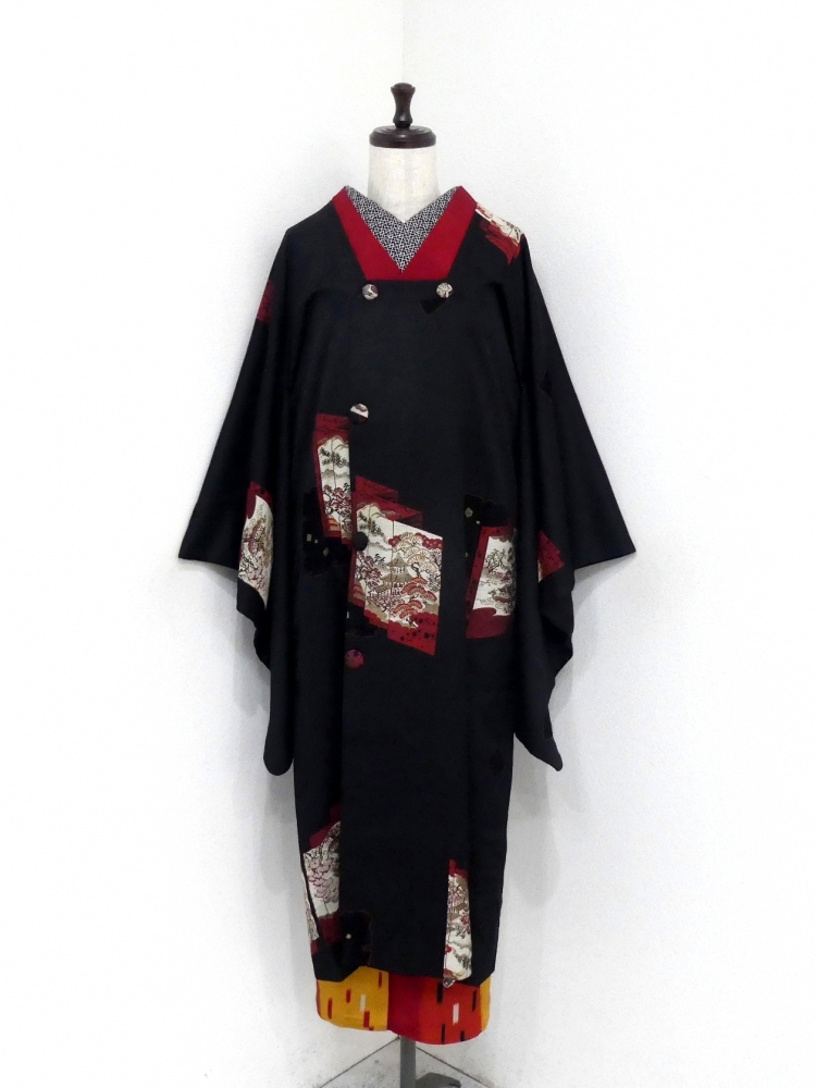 〓雅星〓レトロ!!ブラック*屏風文 ビロード♪道行コート 正絹 裄63丈118 販売価格 16,800円 (税込) sold out この商品について問い合わせる お気に入り 特定商取引法に基づく表記 商品詳細 状態ランク: ★★★ 体に沿うすっきりシルエットが魅力の道行コート♪ シボのないするりとしたお召し地、ブラックベースに御所風景文があしらわれた屏風文が粋な印象。 部分的にビロードも使用されており表情があります。 寒さを感じる季節にも和服らしい華やかさを感じ、きちんと感が出せるので1枚はマストアイテムです。 この時期ならではの重ね着コーデをお楽しみください! 羽裏に強い変色が見られます。 擦れのような白っぽい汚れが数か所ありますが時代なりです。 その他着後に酷く目立つダメージはないので、時代物に慣れた方・色柄を気に入ってくださった方に是非! 羽織のみの価格で、着物は含まれておりません。 サイズ・素材 裄 63cm 肩身丈 118cm 袖丈 64cm 袖幅 31.5cm 前幅 -cm 後ろ幅 29.5cm 内揚げ -cm 縫込み(袖側) -cm 縫込み(肩側) -cm 素材 正絹 状態ランクについて ★★★★★ 超美品・新品・未使用品です。 ★★★★ 中古品ですがダメージの無いお品です。 ★★★ 薄ジミなどがありますが着用時には目立ちません。 ★★ 工夫次第で十分着用可能なお買い得品です ★ 大きめのシミがありますので、リメイク材料等にどうぞ。 _hao _an