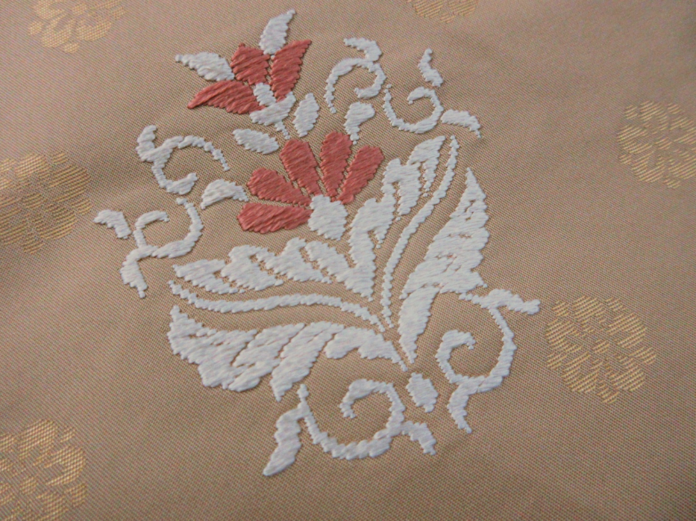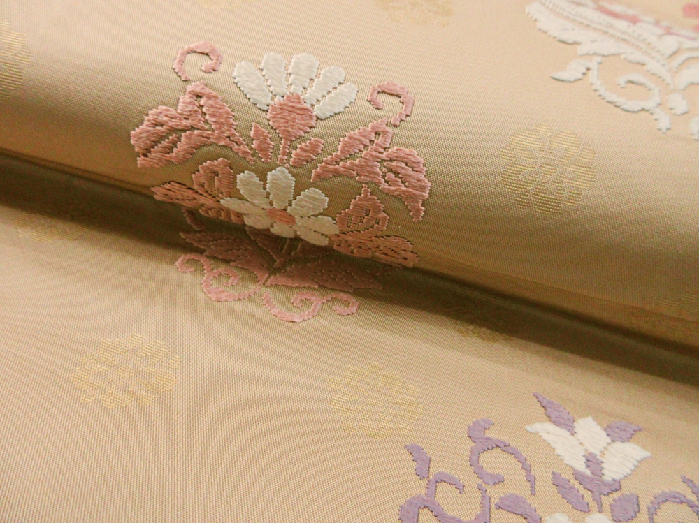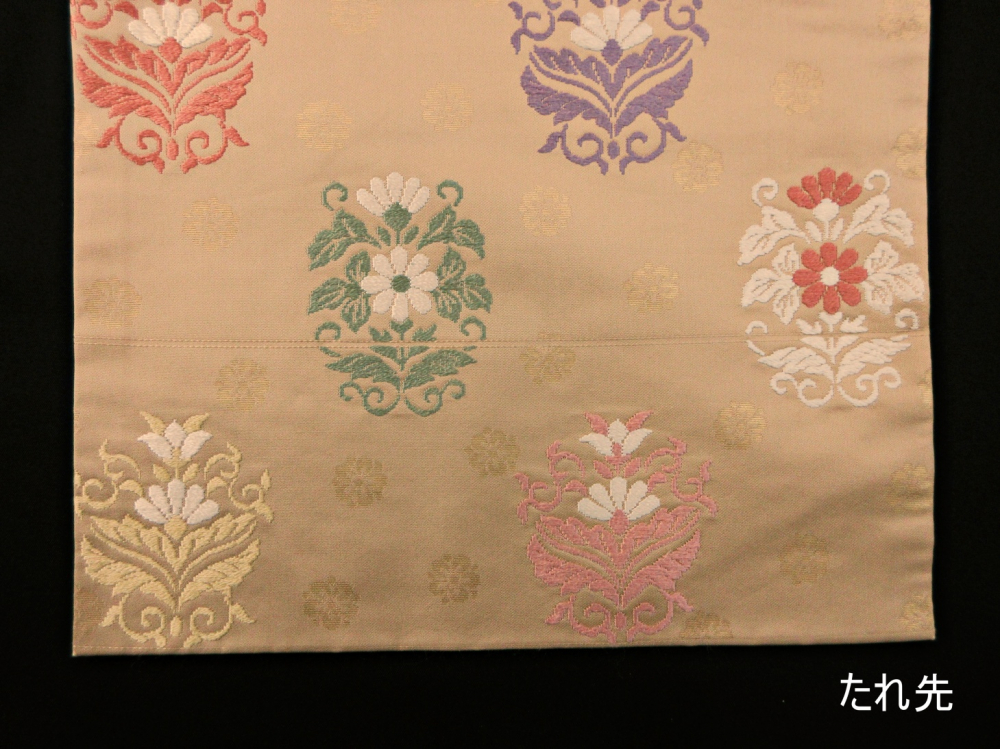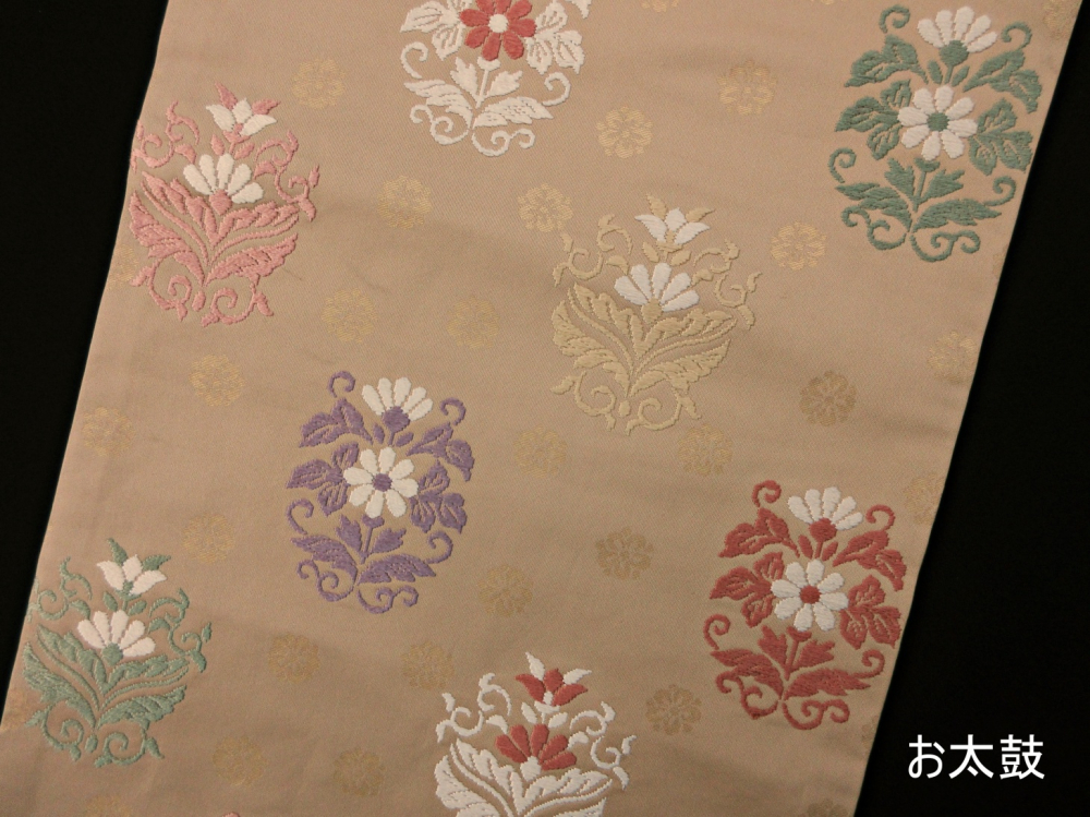 *雅星*良品!!コルク*唐織 花菱模様 正絹九寸《名古屋帯》 販売価格 19,800円 (税込) 購入数 \送料無料/ カートに入れる この商品について問い合わせる お気に入り 特定商取引法に基づく表記 商品詳細 状態ランク: ★★★ しなやかで柔らかな手触り、上質な正絹地なので胴にも添いやすく締めやすい◎ 明るい茶色ベースに艶やかな唐織で施された花菱模様が上品な華やかさ。 一見袋帯のような高貴さがあり、合わせるお着物をぐっと上質な印象へと格上げしてくれる逸品です。 人と差のつく、凛とした着こなしが叶う九寸名古屋帯です。 画像の様に薄シミがありますが締めた際には隠れる部分なので気になりません。 帯のみの価格で、着物・小物は含まれておりません。 サイズ・素材 長さ 31.5cm×358cm 素材 正絹 状態ランクについて ★★★★★ 超美品・新品・未使用品です。 ★★★★ 中古品ですがダメージの無いお品です。 ★★★ 薄ジミなどがありますが着用時には目立ちません。 ★★ 工夫次第で十分着用可能なお買い得品です ★ 大きめのシミがありますので、リメイク材料等にどうぞ。
