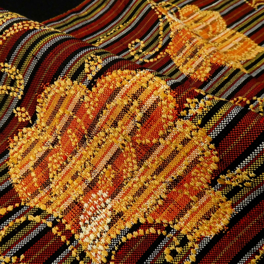 〓雅星〓未使用超美!!レッド系*間道縞 唐花文♪正絹八寸《名古屋帯》 販売価格 26,800円 (税込) 購入数 \送料無料/ カートに入れる この商品について問い合わせる お気に入り 特定商取引法に基づく表記 商品詳細 状態ランク: ★★★★★ 素朴な紬地、間道縞に唐花模様があしらわれたちょっと珍しい組み合わせのデザイン。 しなやかな手触りで軽い締め心地なので普段着キモノとして最適。 綺麗目な正統派からカジュアルスタイルまで幅広くお使い頂ける八寸名古屋帯です。 目立つシミ・汚れのない未使用超美のお品です。(撮影時のみ使用) 帯のみの価格で、着物・小物は含まれておりません。 サイズ・素材 長さ 30.5cm×362cm 素材 正絹 状態ランクについて ★★★★★ 超美品・新品・未使用品です。 ★★★★ 中古品ですがダメージの無いお品です。 ★★★ 薄ジミなどがありますが着用時には目立ちません。 ★★ 工夫次第で十分着用可能なお買い得品です ★ 大きめのシミがありますので、リメイク材料等にどうぞ。
