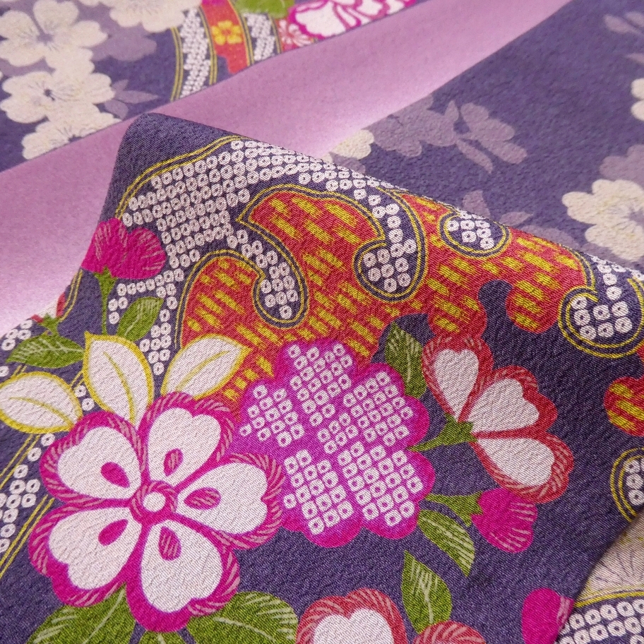 シボが細かく落ち感も綺麗、一見絹と見紛うような上質な手触りポリエステル縮緬地です。