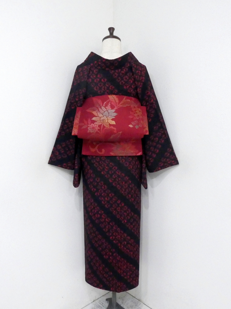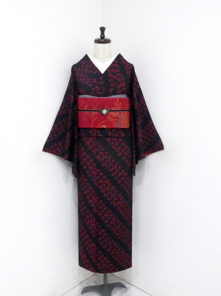 〓雅星〓超美!!ブラック×レッド*絞り模様 斜めライン♪紬地小紋 正絹袷 裄62.5丈153 販売価格 46,800円 (税込) 購入数 \送料無料/ カートに入れる この商品について問い合わせる お気に入り 特定商取引法に基づく表記 コーディネートで使用している商品 〓雅星〓未使用超美!!レッド系*唐花文♪正絹八寸《名古屋帯》 24,800円(税込) 〓雅星本店オリジナル〓新品!!ブラック&グレー ストーン*友禅帯揚げ 正絹縮緬 【クリックポスト発送】 15,400円(税込) ★雅星本店オリジナル★新品*リバーシブル 縁あり三分紐【クリックポスト発送】 6,600円(税込) 商品詳細 状態ランク: ★★★★★ 紬地ですが素朴感は控えめ、しなやかな手触りで落ち感も綺麗な正絹地です。 ブラックベースにレッドの蜘蛛絞りが斜めライン状に施されたクールなデザイン。 柄合わせもされているので柄の並びが崩れることなくスッキリとした着こなしが叶います。 人と差のつく、ワンランク上の着こなしが楽しめる小紋です。 《袷・広衿》身長〜158cm位までの方にオススメです。 それ以上の方はミセル裾除けホムシュヘムなどと合わせても♪ 目立つシミ・汚れはなく、大変状態の良い綺麗なお品です。 着物のみの価格で、帯・小物は含まれておりません。 サイズ・素材 裄 62.5cm 肩身丈 153cm 袖丈 46.5cm 袖幅 32cm 前幅 24cm 後ろ幅 29cm 内揚げ 16cm 縫込み(袖側) 3cm 縫込み(肩側) 4.5cm 素材 正絹 状態ランクについて ★★★★★ 超美品・新品・未使用品です。 ★★★★ 中古品ですがダメージの無いお品です。 ★★★ 薄ジミなどがありますが着用時には目立ちません。 ★★ 工夫次第で十分着用可能なお買い得品です ★ 大きめのシミがありますので、リメイク材料等にどうぞ。