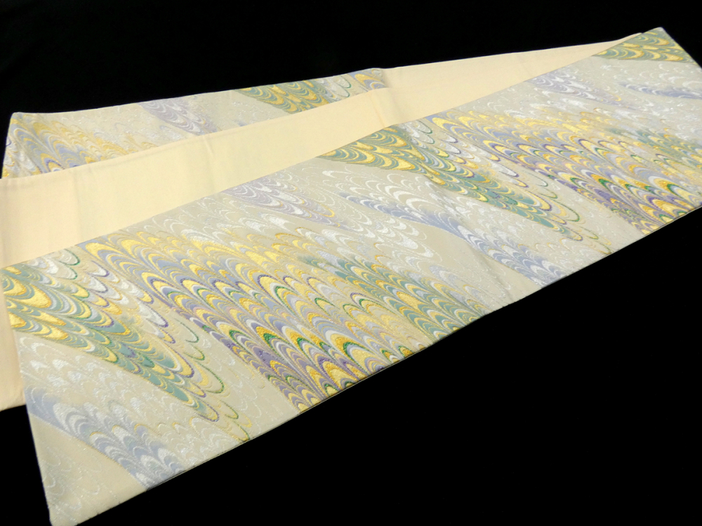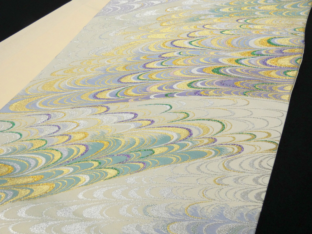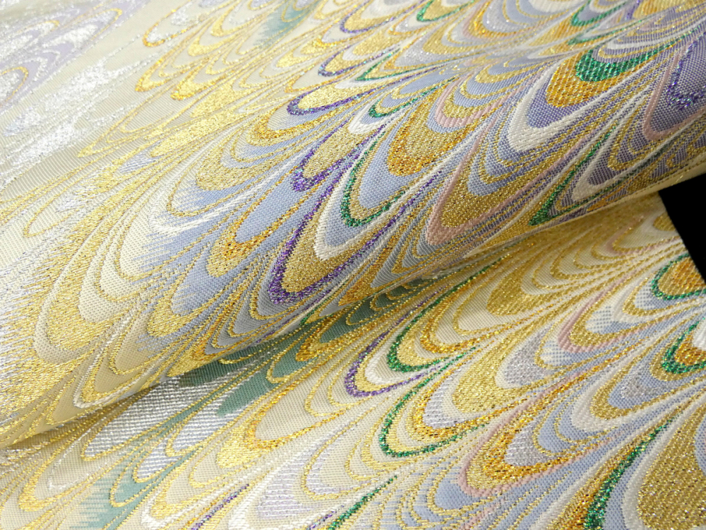 ◆雅星◆超美!!ホワイト*キラキラ 墨流し風 正絹六通《袋帯》 販売価格 39,800円 (税込) 購入数 \送料無料/ カートに入れる この商品について問い合わせる お気に入り 特定商取引法に基づく表記 商品詳細 状態ランク: ★★★★ 白地に寒色の墨流し風模様、金銀の糸が織り込まれています。 フォーマルシーンを華やかに彩ってくれる上質な袋帯です。 人と差のつくワンランク上の着こなしにぜひ! 軽い締め跡がありますが、シミ汚れのない超美品です。 帯のみの価格で、着物・小物は含まれておりません。 サイズ・素材 長さ 30.5cm×439cm 素材 正絹 状態ランクについて ★★★★★ 超美品・新品・未使用品です。 ★★★★ 中古品ですがダメージの無いお品です。 ★★★ 薄ジミなどがありますが着用時には目立ちません。 ★★ 工夫次第で十分着用可能なお買い得品です ★ 大きめのシミがありますので、リメイク材料等にどうぞ。 _fo