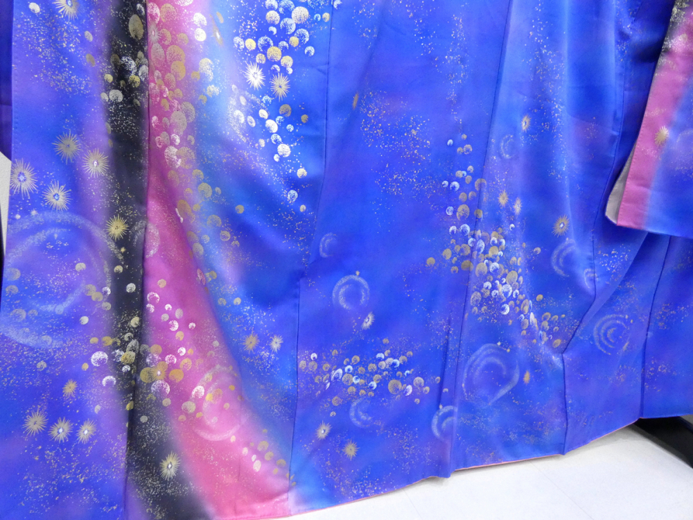 ◆雅星◆超美!!薄紫色*【フランソワーズ・モレシャン】 銀河 振袖 正絹袷 裄67丈168ロング 販売価格 86,800円 (税込) 購入数 \送料無料/ カートに入れる この商品について問い合わせる お気に入り 特定商取引法に基づく表記 コーディネートで使用している商品 ◆雅星◆超美!!ホワイト*キラキラ 墨流し風 正絹六通《袋帯》 39,800円(税込) 商品詳細 状態ランク: ★★★★ フランスのライフスタイルアドバイザー フランソワーズモレシャンの振袖です。 しなやかな手触りで落ち感が綺麗、ずっしりとした上質な正絹地です。 紫系のグラデーションベース、月や星のような細かい金彩で柄付けされています。 斬新かつアーティスティックなデザインで人と差のつく着こなしが叶います。 成人式だけでなく、パーティーなどにもおススメな1枚です。 《袷・広衿》身長158cm〜171cm位までの方にオススメです。 しつけは付いていませんが、シミ汚れのない超美品です。 着物のみの価格で、帯・小物は含まれておりません。 サイズ・素材 裄 67cm 肩身丈 168cm 袖丈 117cm 袖幅 33cm 前幅 24.5cm 後ろ幅 30cm 内揚げ 9cm 縫込み(袖側) 2.5cm 縫込み(肩側) 1cm 素材 正絹 状態ランクについて ★★★★★ 超美品・新品・未使用品です。 ★★★★ 中古品ですがダメージの無いお品です。 ★★★ 薄ジミなどがありますが着用時には目立ちません。 ★★ 工夫次第で十分着用可能なお買い得品です ★ 大きめのシミがありますので、リメイク材料等にどうぞ。 _furi _fo
