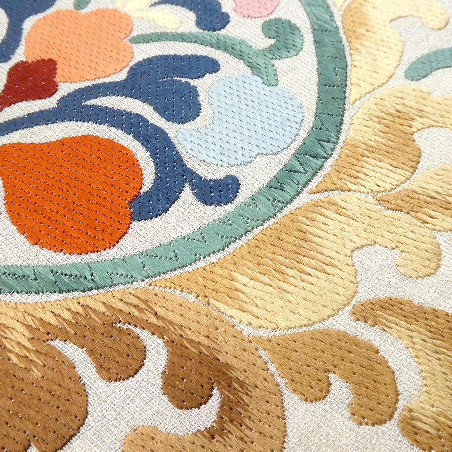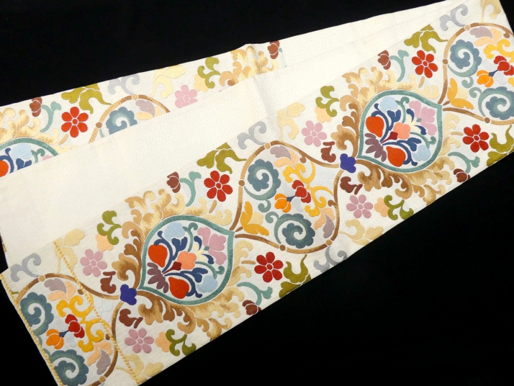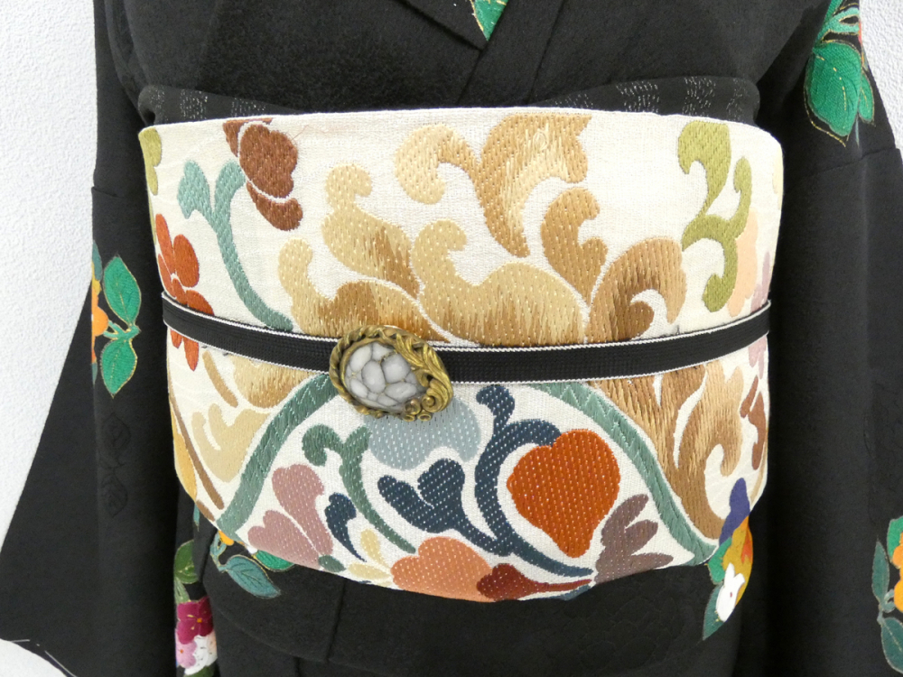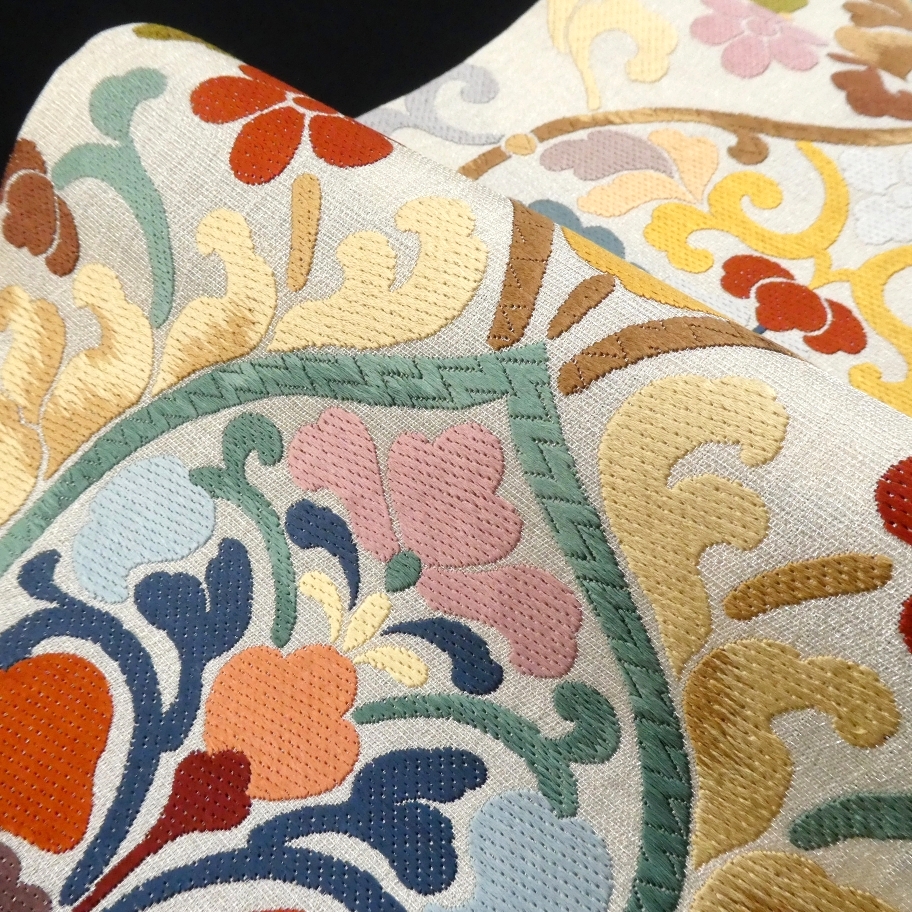 〓雅星〓未使用超美!!アイボリー*唐織 オリエンタル♪正絹六通《袋帯》 販売価格 49,800円 (税込) 購入数 \送料無料/ カートに入れる この商品について問い合わせる お気に入り 特定商取引法に基づく表記 商品詳細 状態ランク: ★★★★★ 銀糸が繊細に煌めくアイボリーベース、ふっくらとした唐織であしらわれたオリエンタルな模様がお着物をより華やかな印象にしてくれます。 多色使いなので様々なお着物に合わせやすく万能。 正統派なフォーマルシーンはもちろん、華やかなパーティなどにもおススメな袋帯です。 目立つシミ・汚れのない未使用超美のお品です。(撮影時のみ使用) 帯のみの価格で、着物・小物は含まれておりません。 サイズ・素材 長さ 31cm×446cm 素材 正絹 状態ランクについて ★★★★★ 超美品・新品・未使用品です。 ★★★★ 中古品ですがダメージの無いお品です。 ★★★ 薄ジミなどがありますが着用時には目立ちません。 ★★ 工夫次第で十分着用可能なお買い得品です ★ 大きめのシミがありますので、リメイク材料等にどうぞ。 _fo