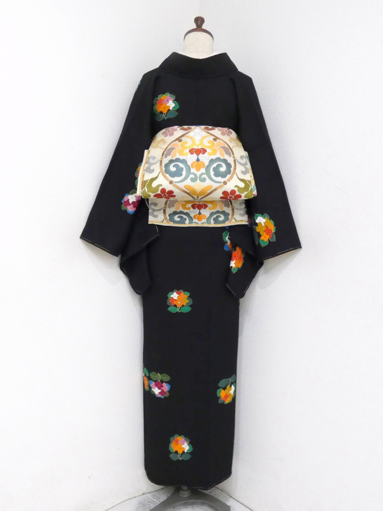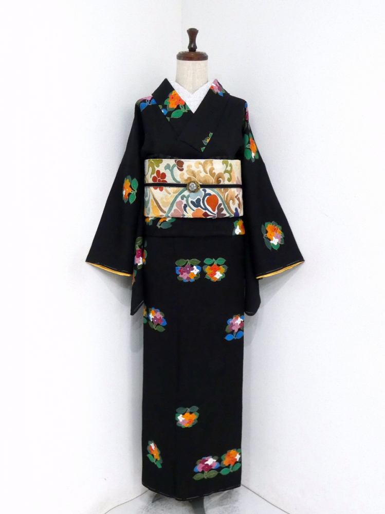 ◆雅星◆未使用超美!!ブラック*カラフル花文 小紋 正絹袷 裄66丈166ロング 販売価格 39,800円 (税込) 購入数 \送料無料/ カートに入れる この商品について問い合わせる お気に入り 特定商取引法に基づく表記 コーディネートで使用している商品 〓雅星〓未使用超美!!アイボリー*唐織 オリエンタル♪正絹六通《袋帯》 49,800円(税込) ★雅星本店オリジナル★新品!!ブラック*シマシマ 銀通し 帯揚げ 正絹 【クリックポスト発送】 15,400円(税込) ★雅星本店オリジナル★新品!!ブラック*帯締め 房付き四分紐 正絹【クリックポスト発送】 14,800円(税込) 商品詳細 状態ランク: ★★★★★ ブラックベースに柄と同じ地紋、ずっしりした正絹地を使用しております。 からふるなはなもようがそめられ、周りには金彩があしらわれています。 上品な飛び柄、人と差のつくこなれた着こなしが叶います。 綺麗目な正統派からドレッシーなスタイリングまで、振り幅広めに楽しめる上質な小紋です。 《袷・広衿》身長161〜171cm位までの方にオススメです。 しつけ付き、シミ汚れのない超美品です。 着物のみの価格で、帯・小物は含まれておりません。 サイズ・素材 裄 66cm 肩身丈 166cm 袖丈 49cm 袖幅 32.5cm 前幅 24cm 後ろ幅 30.5cm 内揚げ 0cm 縫込み(袖側) 1.cm 縫込み(肩側) 1cm 素材 正絹 状態ランクについて ★★★★★ 超美品・新品・未使用品です。 ★★★★ 中古品ですがダメージの無いお品です。 ★★★ 薄ジミなどがありますが着用時には目立ちません。 ★★ 工夫次第で十分着用可能なお買い得品です ★ 大きめのシミがありますので、リメイク材料等にどうぞ。