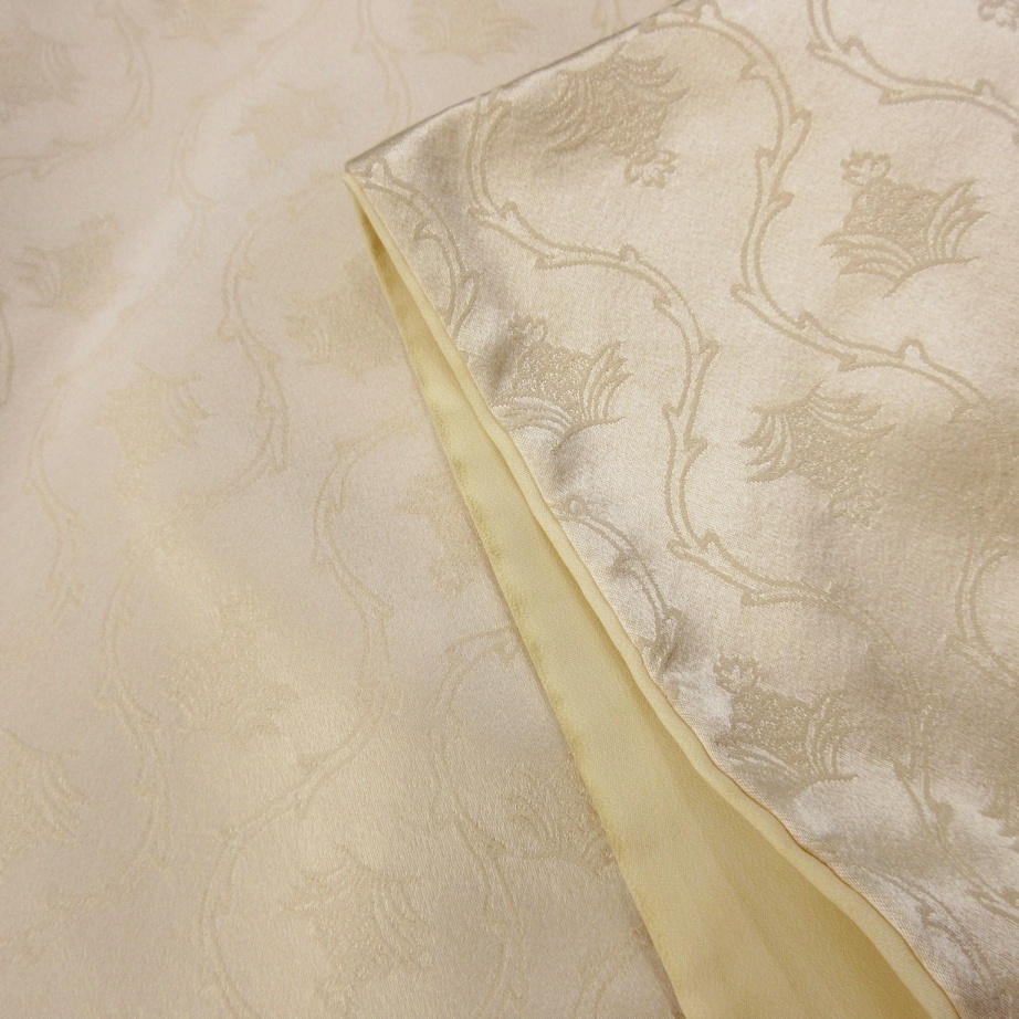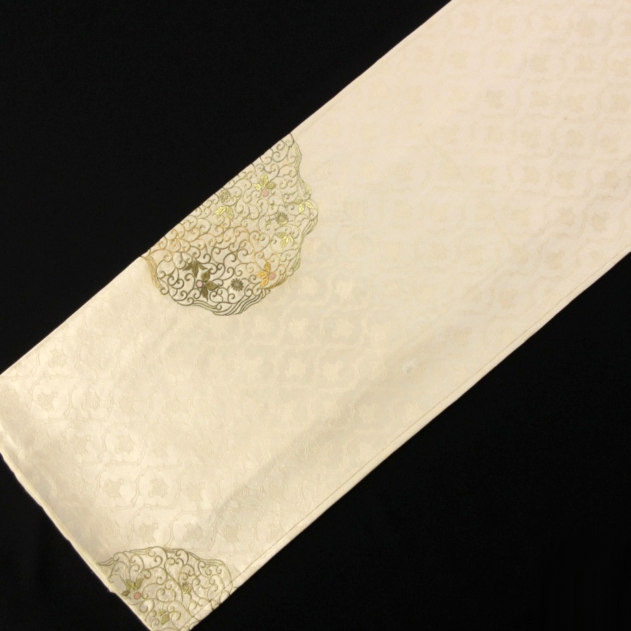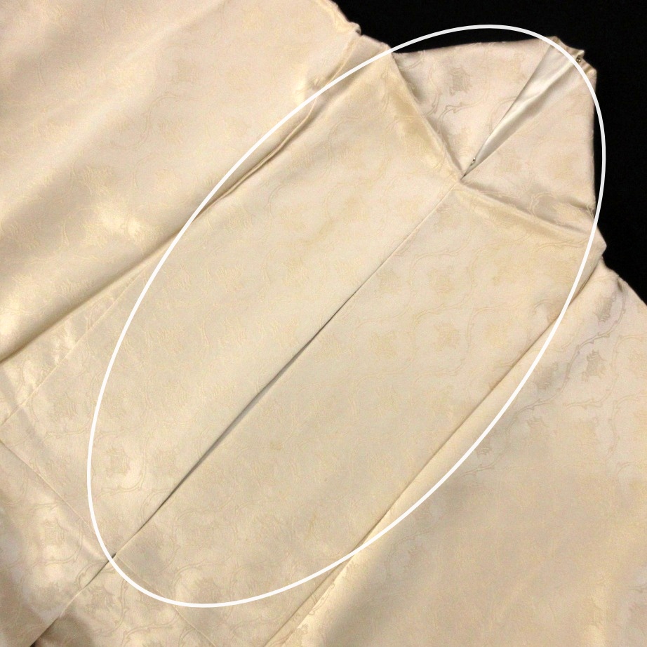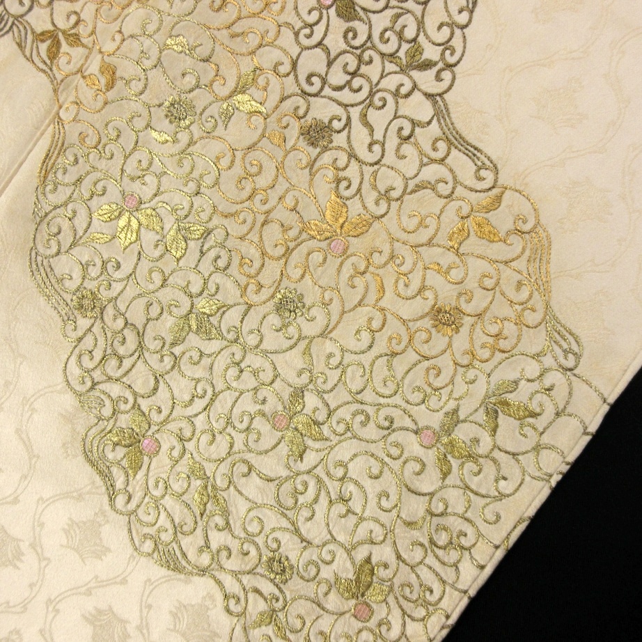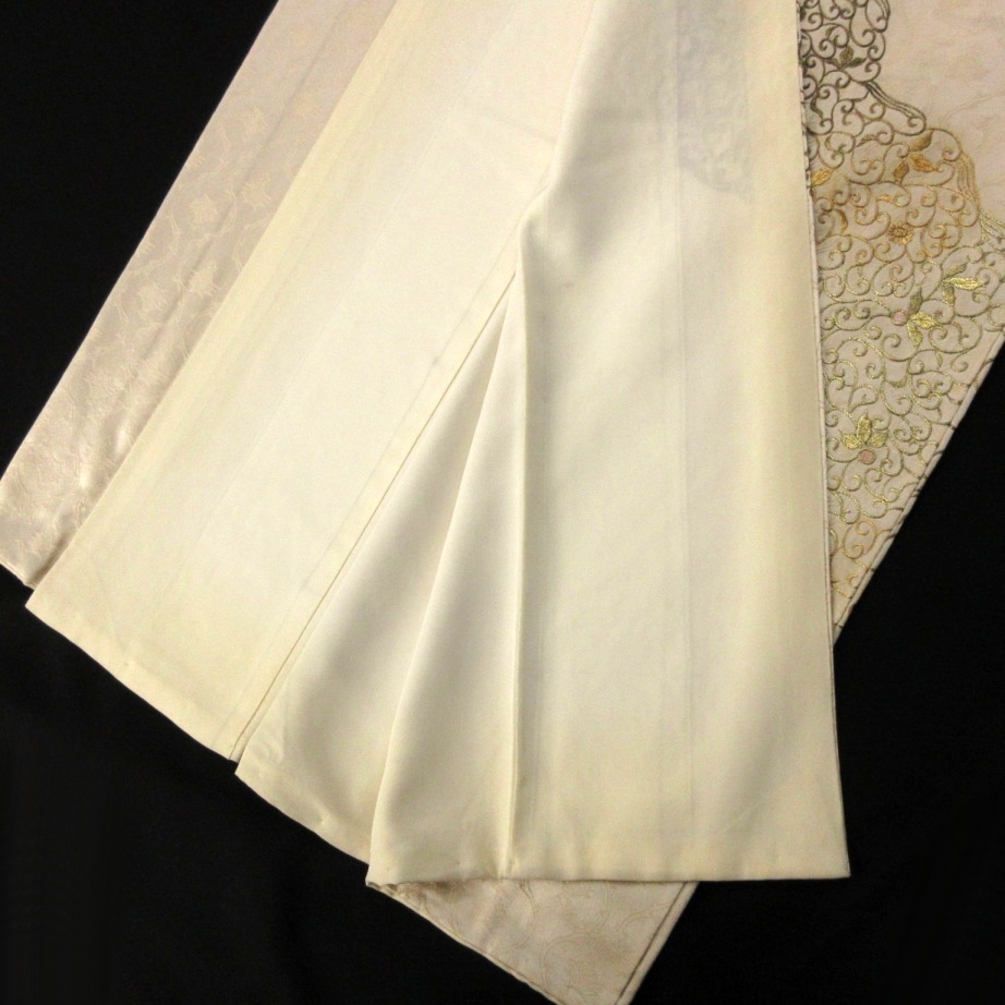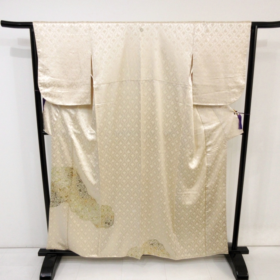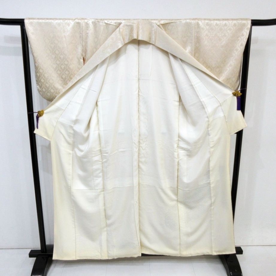 光沢感あるアイボリーベースに、立涌地紋が浮かび上がる艶やかな綸子地。