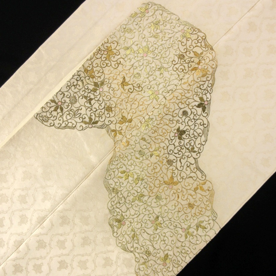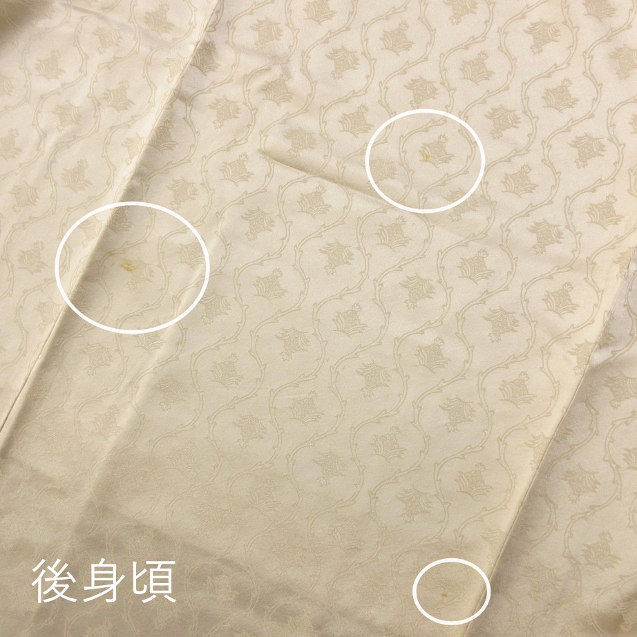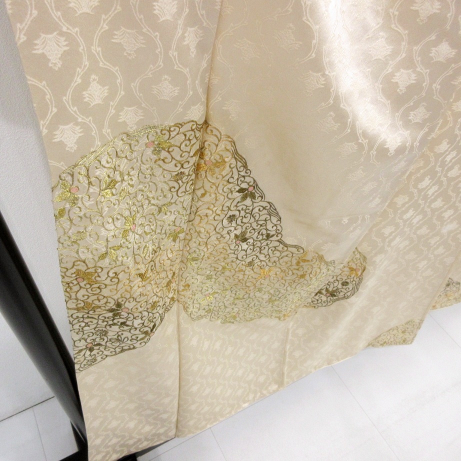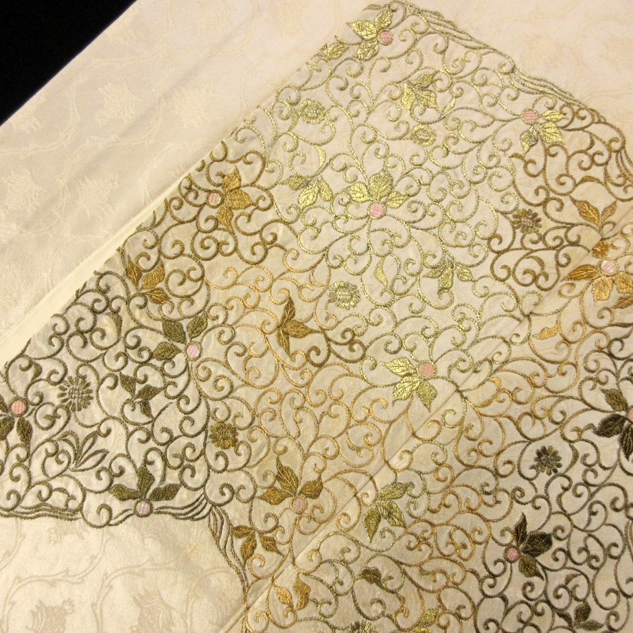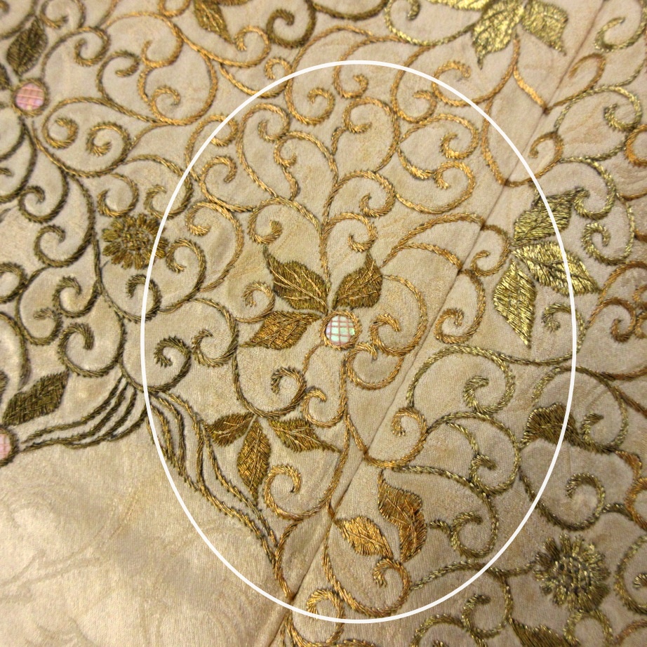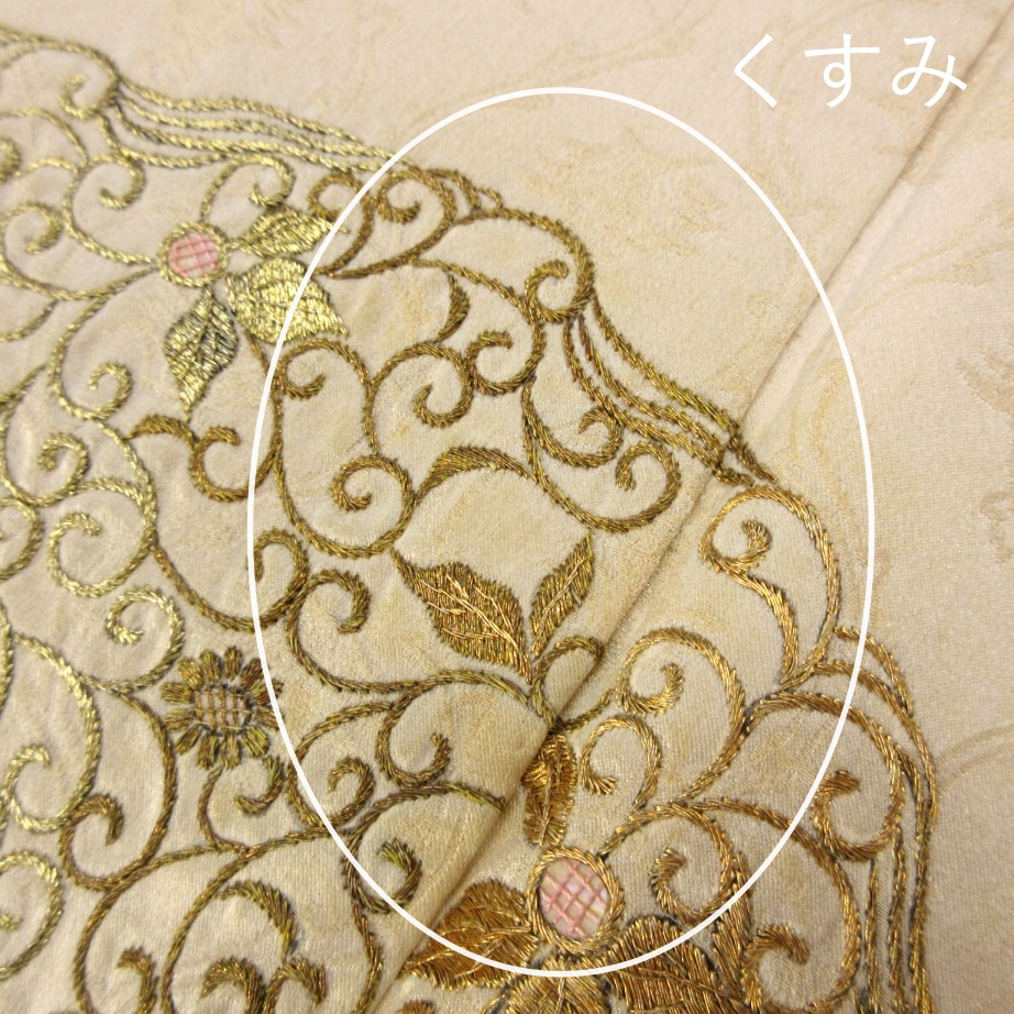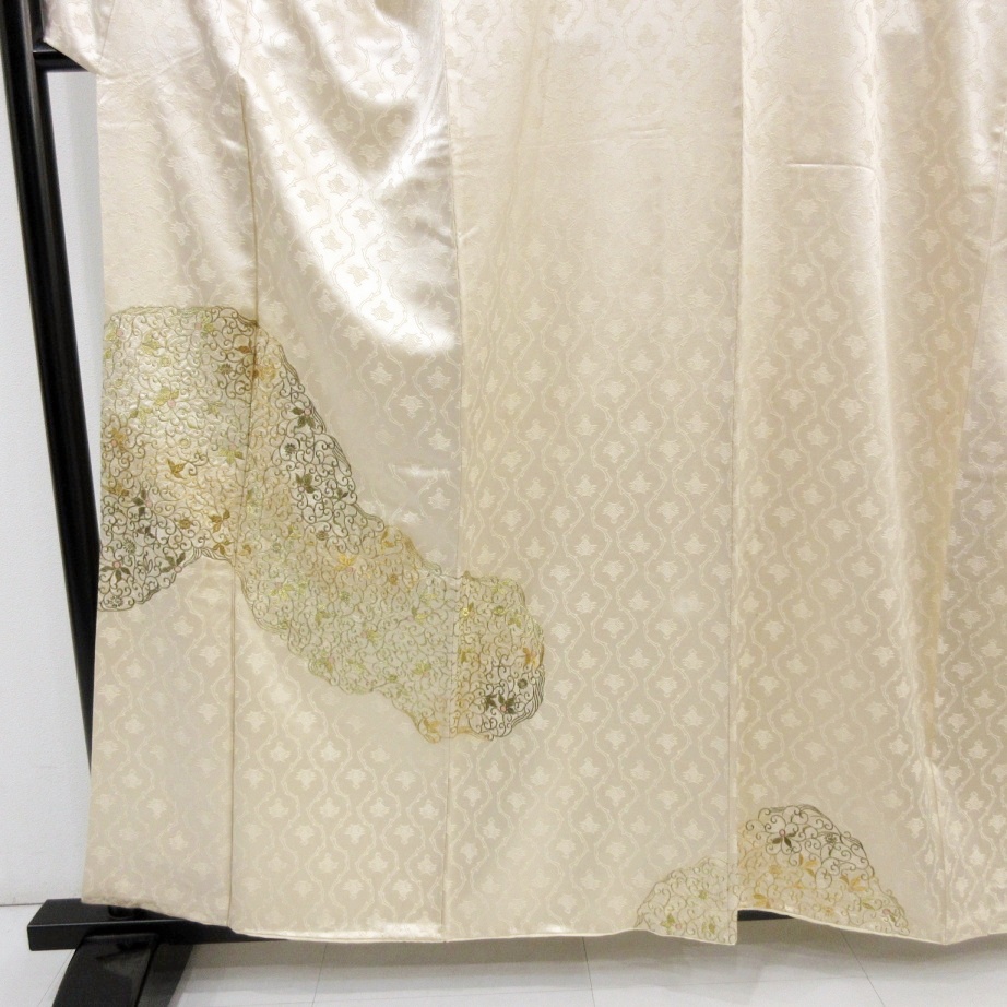 ■雅星■レトロ!!クリームパール*刺繍 螺鈿 唐草 霞♪一つ紋色留袖 正絹袷 裄63丈160ロング