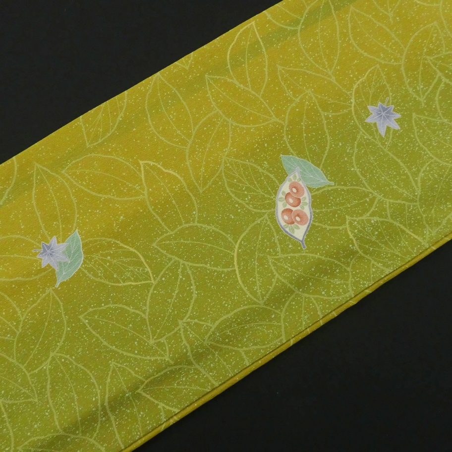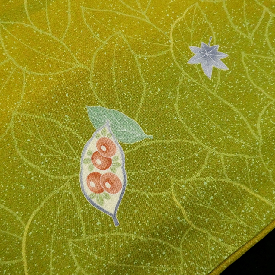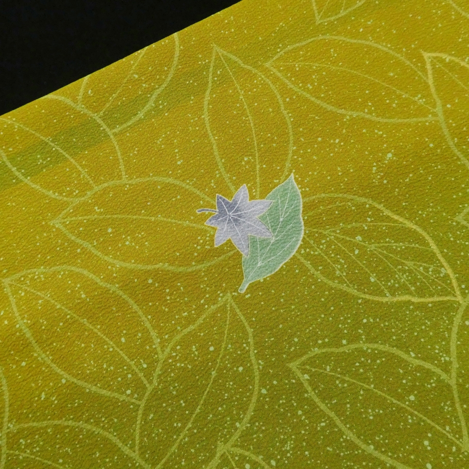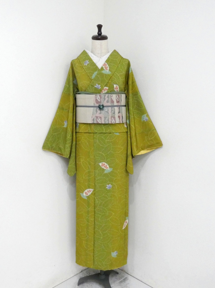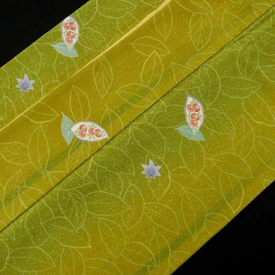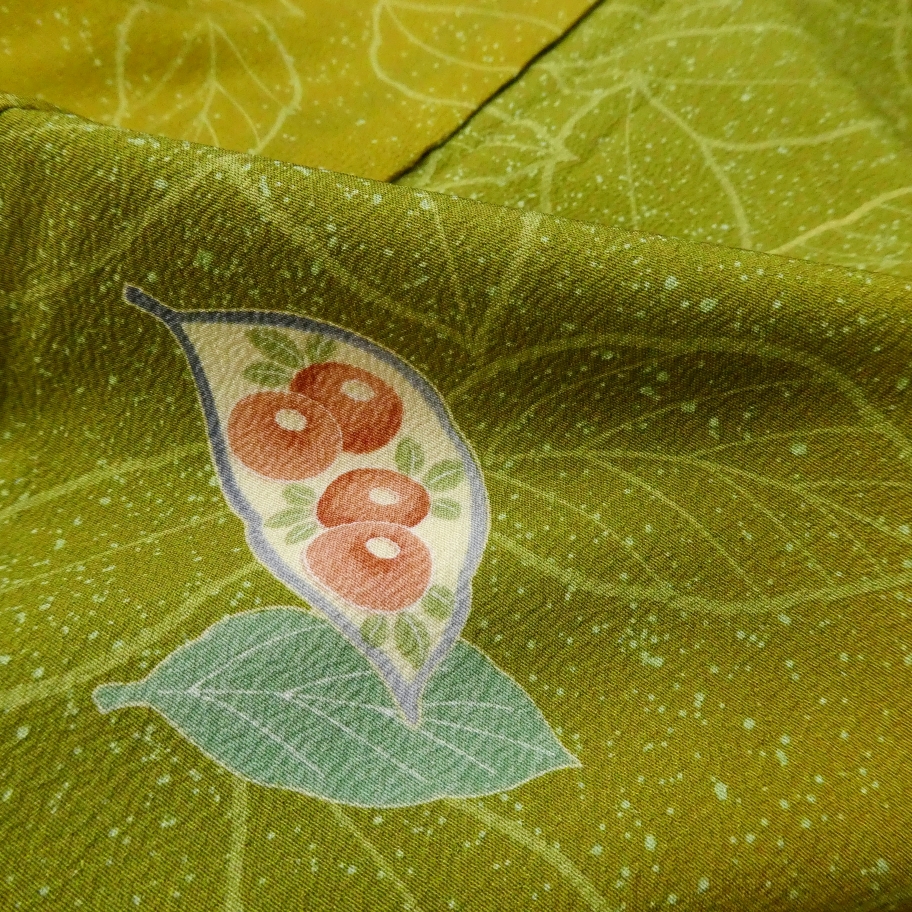 〓雅星〓超美!!グリーン系*リーフ♪洗える小紋 袷 裄65.5丈160ロング