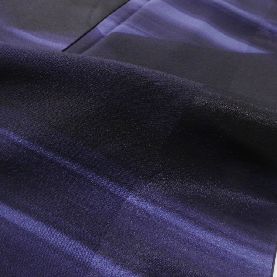 〓雅星〓未使用超美!!濃紺*ジグザグ 横段♪小紋 正絹袷 裄68丈169ロング
