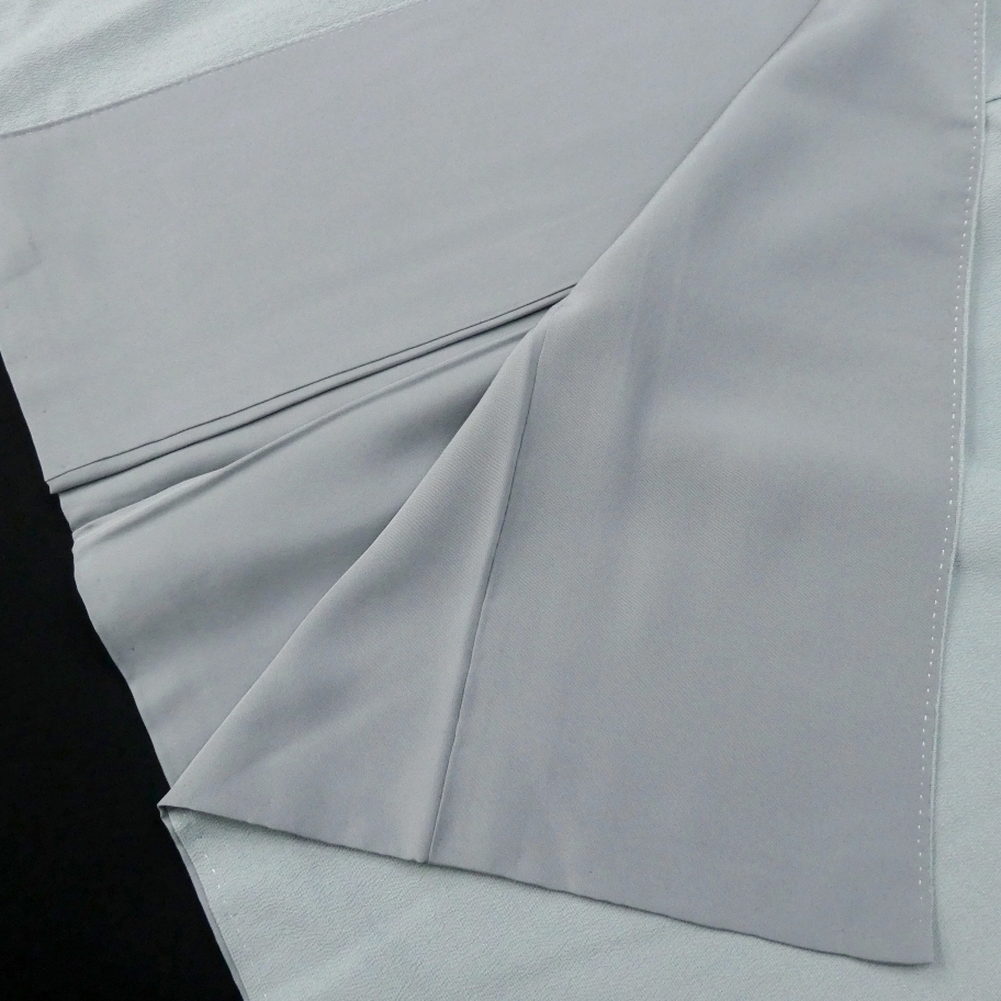 千草鼠色(薄緑色味を帯びた灰色系)ベース、程よい張りがある紬ちりめん地。