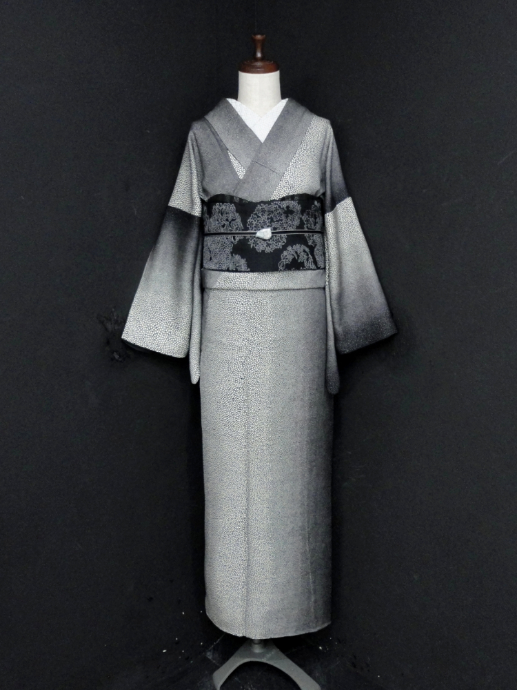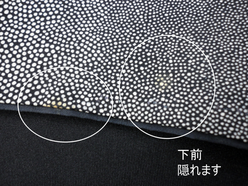 ○雅星○レトロ!!モノトーン*グラデ ドット 小紋 正絹袷 裄65丈156 販売価格 24,800円 (税込) sold out この商品について問い合わせる お気に入り 特定商取引法に基づく表記 コーディネートで使用している商品 ★雅星本店オリジナル★新品!!ブラック*シマシマ 銀通し 帯揚げ 正絹 【クリックポスト発送】 15,400円(税込) ★雅星本店オリジナル★新品*リバーシブル 縁あり三分紐【クリックポスト発送】 6,600円(税込) 商品詳細 状態ランク: ★★★ とろんとしなやかな手触りで落ち感の綺麗な正絹地。 人気のモノトーンベースのグラデーション、多様なドット模様がポップすぎず程よく大人可愛い♪ 人と差のつく、個性の光るスタイリングが楽しめるセミアンティークの小紋です。 《袷・広衿》身長151〜161cm位までの方にオススメです。 それ以上の方は対丈や洋服ミックスのスタイリングもお洒落です♪ 画像の様に薄シミが見られますが見える箇所は色柄に紛れてよく見ないと分からないくらいです。 胴裏、衿裏のシミも着てしまえば隠れる部分なので全く問題ありません。 時代物の中ではグッドコンディションなお品です。 着物のみの価格で、帯・小物は含まれておりません。 サイズ・素材 裄 65cm 肩身丈 156cm 袖丈 47.5cm 袖幅 33cm 前幅 25cm 後ろ幅 30cm 内揚げ 0cm 縫込み(袖側) 2.5cm 縫込み(肩側) 2.5cm 素材 正絹 状態ランクについて ★★★★★ 超美品・新品・未使用品です。 ★★★★ 中古品ですがダメージの無いお品です。 ★★★ 薄ジミなどがありますが着用時には目立ちません。 ★★ 工夫次第で十分着用可能なお買い得品です ★ 大きめのシミがありますので、リメイク材料等にどうぞ。 _an _mono