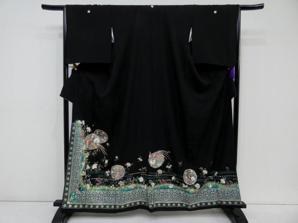 ◆雅星◆美品!!銀彩 螺鈿 ヨーロピアン 花鳥丸紋 五つ紋黒留袖 正絹袷 裄66.5丈163ロング 販売価格 42,800円 (税込) 購入数 \送料無料/ カートに入れる この商品について問い合わせる お気に入り 特定商取引法に基づく表記 商品詳細 状態ランク: ★★★ 比翼仕立て・染めの五つ紋、最も格の高い礼装。 華やかさ、豪華さ、上品さを兼ね備えた古典柄で落ち着きのある印象。 銀彩で描かれた細かい縁取りの模様、 上品な華やかさのある、ミセスの祝儀の衣装にふさわしい黒留袖です。 《袷・広衿》身長158〜168cm位までの方にオススメです。 衿筋ごく薄いシミ汚れが見られますが、 着用時には目立ちにくかったです。 ダメージの分お安くなっていますので、気にせずご着用いただける方、お買い得です♪ 着物のみの価格で、帯・小物は含まれておりません。 サイズ・素材 裄 66.5cm 肩身丈 163cm 袖丈 48cm 袖幅 34cm 前幅 24cm 後ろ幅 31cm 内揚げ 8cm 縫込み(袖側) 2cm 縫込み(肩側) 2cm 素材 正絹 状態ランクについて ★★★★★ 超美品・新品・未使用品です。 ★★★★ 中古品ですがダメージの無いお品です。 ★★★ 薄ジミなどがありますが着用時には目立ちません。 ★★ 工夫次第で十分着用可能なお買い得品です ★ 大きめのシミがありますので、リメイク材料等にどうぞ。 _fo