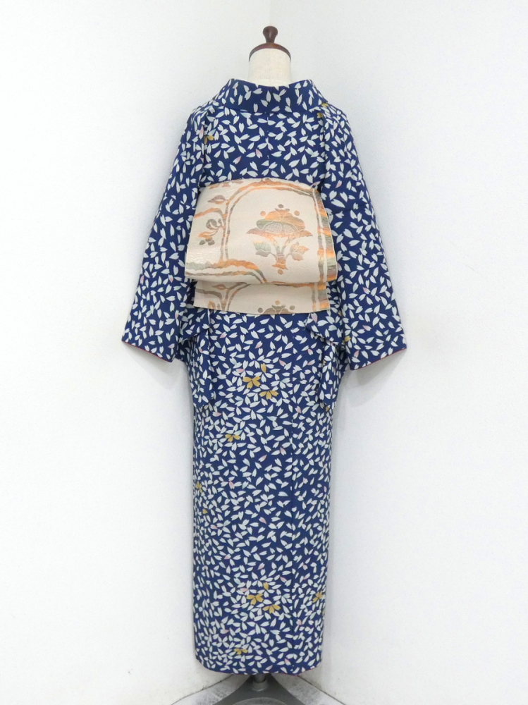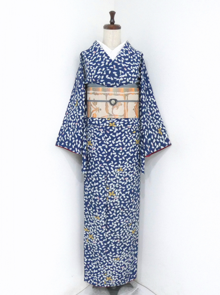 ◆雅星◆超美!!ブルー*桜の花びら 洗える小紋 袷 裄66.5丈163ロング