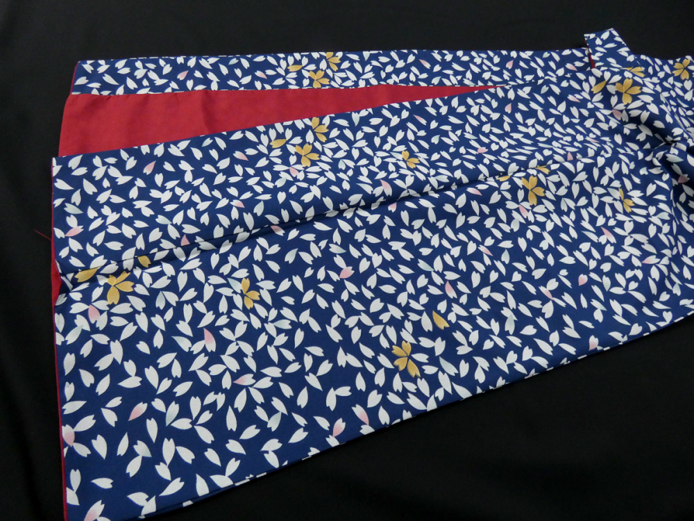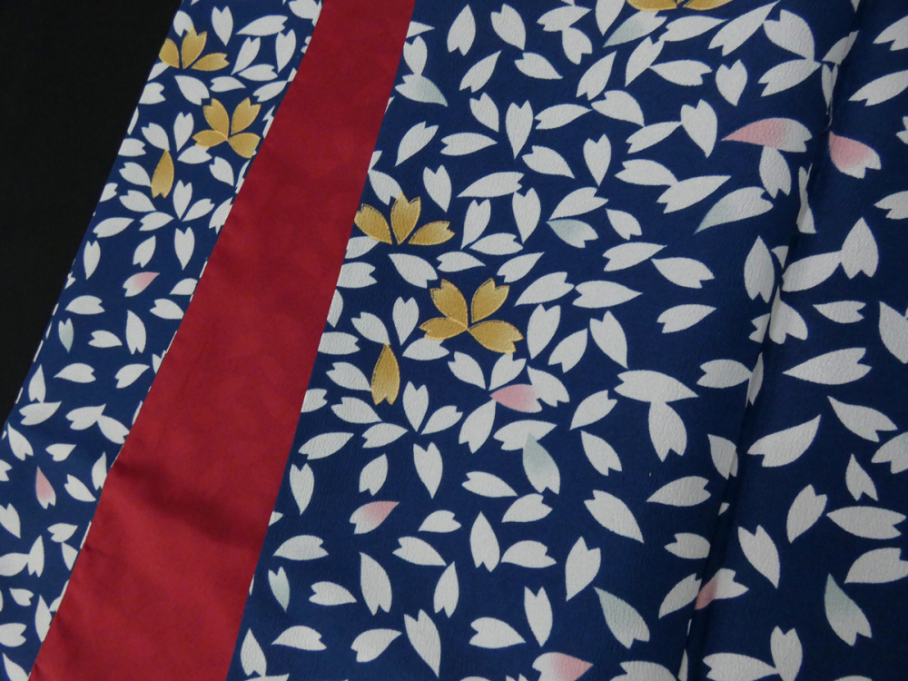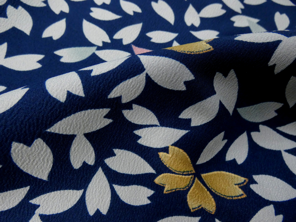 濃いブルーベースに桜の花びら模様、ピンクと黄色の差し色が入っています。