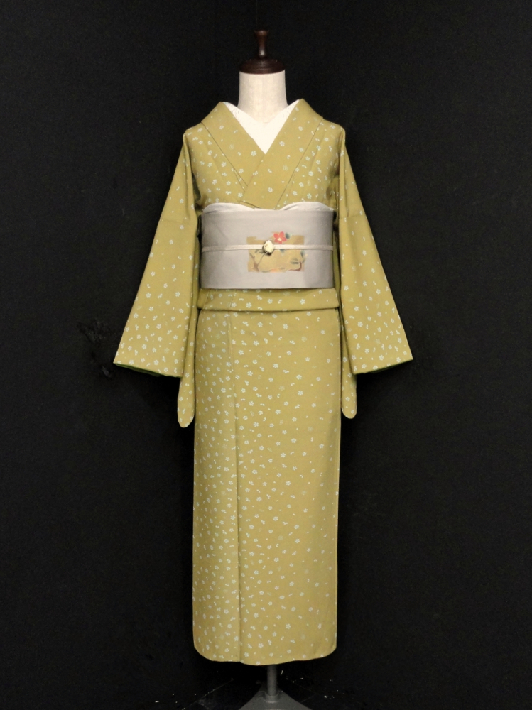 ○雅星○超美!!ブロンズ*桜模様♪洗える小紋 袷 裄64丈155