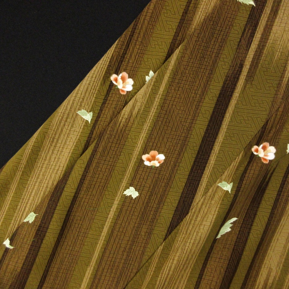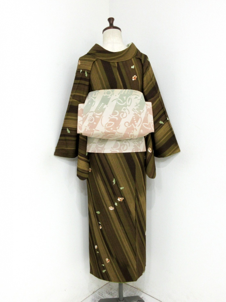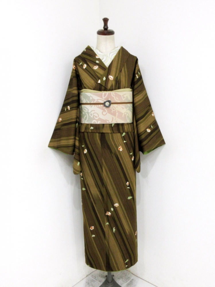 ■雅星■超美!!ブラウン*斜め縞 お花♪小紋 洗える小紋 袷 裄63.5丈154 販売価格 19,800円 (税込) 購入数 \送料無料/ カートに入れる この商品について問い合わせる お気に入り 特定商取引法に基づく表記 コーディネートで使用している商品 ■雅星■美品!!ベージュ*斜め縞 アーティ♪洗える《京袋帯》 17,800円(税込) ◆雅星本店オリジナル◆新品!!サファリ*パイソン 友禅帯揚げ 正絹縮緬 【クリックポスト発送】 15,400円(税込) ★雅星本店オリジナル★新品*リバーシブル 縁あり三分紐【クリックポスト発送】 6,600円(税込) 商品詳細 状態ランク: ★★★★★ 一見、絹と見紛うような滑らかな手触りポリエステル地です。 お天気を気にせずご自宅でお手入れが出来ます。 ブラウンベースに斜め縞に花模様。 流行を問わない色柄で飽きが来ず、 綺麗な正統派からカジュアルコーデまで幅広く楽しめる洗える小紋です。 《袷・バチ衿》身長〜159cm位までの方にオススメです。 シミ汚れなく綺麗なお品です! 着物のみの価格で、帯・小物は含まれておりません。 サイズ・素材 裄 63.5cm 肩身丈 154cm 袖丈 49cm 袖幅 32cm 前幅 24.5cm 後ろ幅 30cm 内揚げ 0cm 縫込み(袖側) 3cm 縫込み(肩側) 2cm 素材 ポリエステル 状態ランクについて ★★★★★ 超美品・新品・未使用品です。 ★★★★ 中古品ですがダメージの無いお品です。 ★★★ 薄ジミなどがありますが着用時には目立ちません。 ★★ 工夫次第で十分着用可能なお買い得品です ★ 大きめのシミがありますので、リメイク材料等にどうぞ。