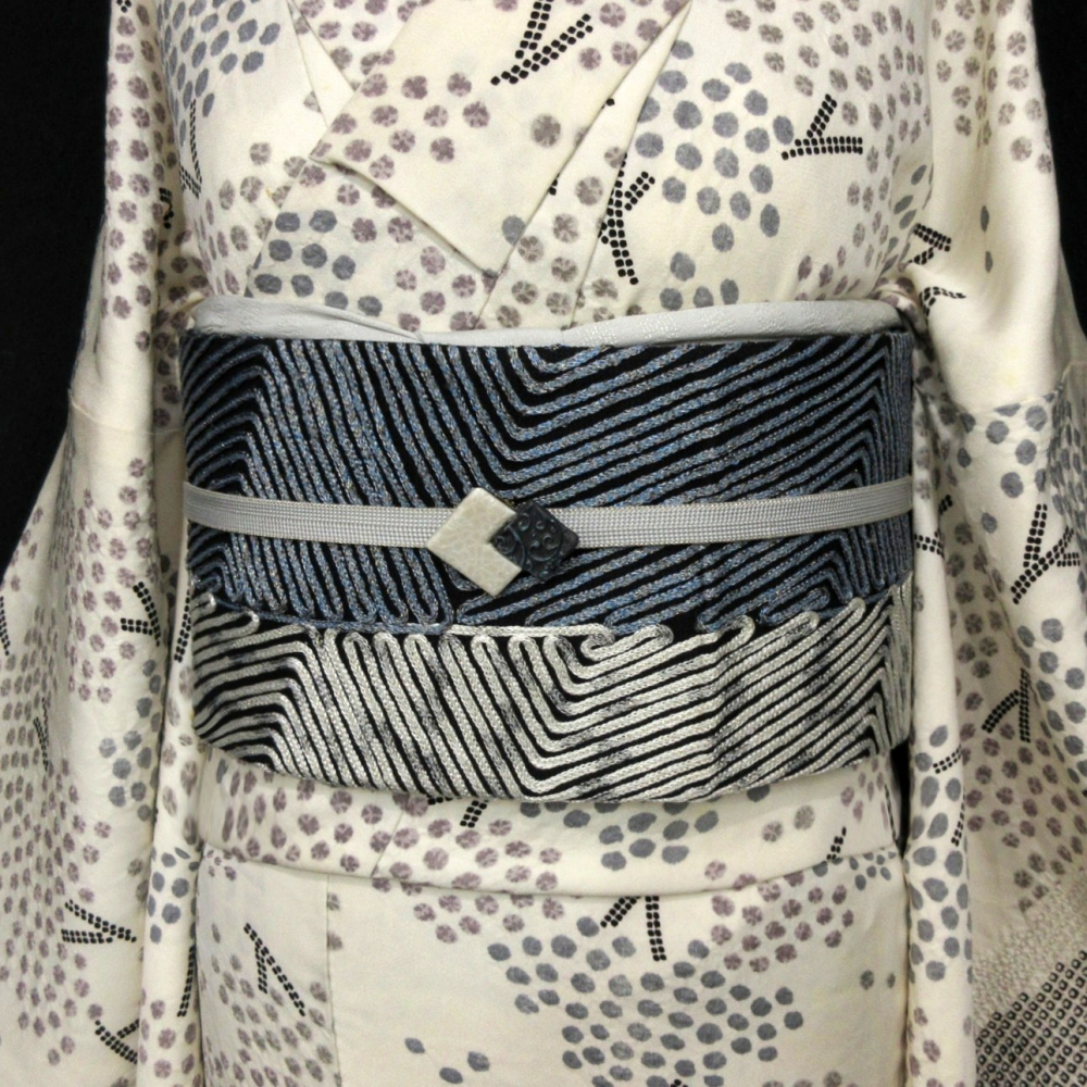 ■雅星■超美!!ブラック×ブルー系【無月】総刺繍♪正絹全通《袋帯》 販売価格 39,800円 (税込) 購入数 \送料無料/ カートに入れる この商品について問い合わせる お気に入り 特定商取引法に基づく表記 商品詳細 状態ランク: ★★★★★ しなやかで細い大島糸をループ状にし、特殊な製法で帯地に縫い付けたもので、 全体的に華やかで独特な織り模様が有名な【無月】の袋帯。 ブラックベースにブルー系の糸で織り出された抽象文がモダンな印象♪ 合わせるお着物をワンランク格上げしてくれる万能な1本です。 シミ汚れの無い綺麗なお品です。 帯のみの価格で、着物・小物は含まれておりません。 サイズ・素材 長さ 31cm×439cm 素材 正絹 状態ランクについて ★★★★★ 超美品・新品・未使用品です。 ★★★★ 中古品ですがダメージの無いお品です。 ★★★ 薄ジミなどがありますが着用時には目立ちません。 ★★ 工夫次第で十分着用可能なお買い得品です ★ 大きめのシミがありますので、リメイク材料等にどうぞ。