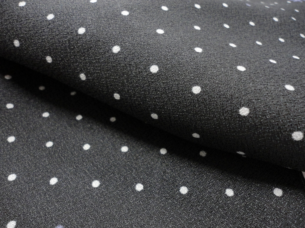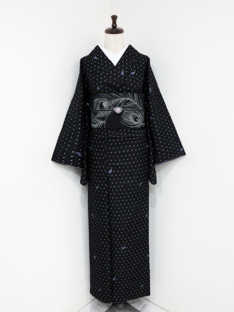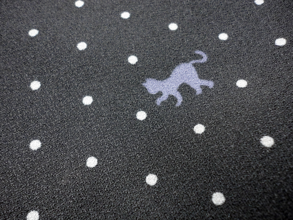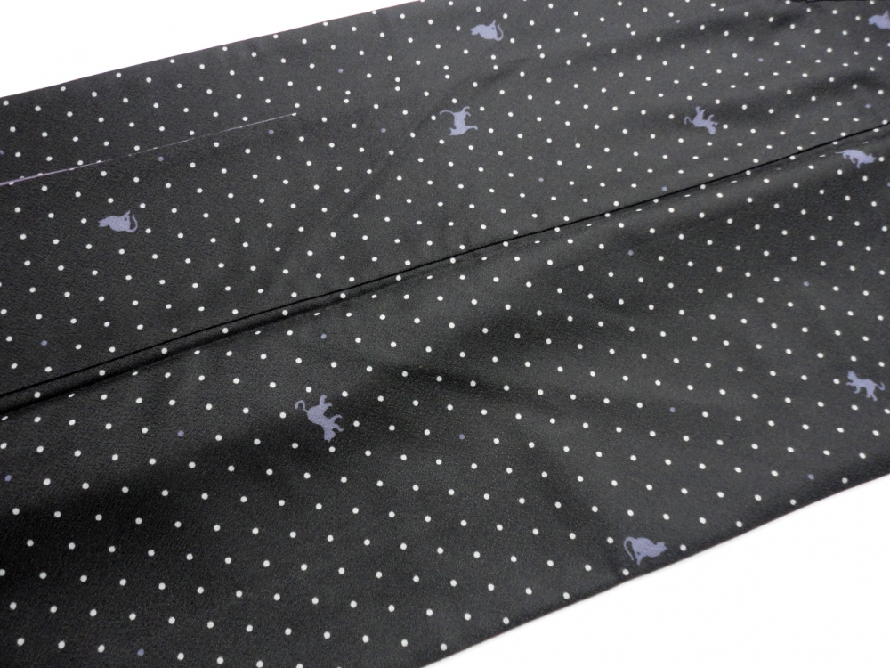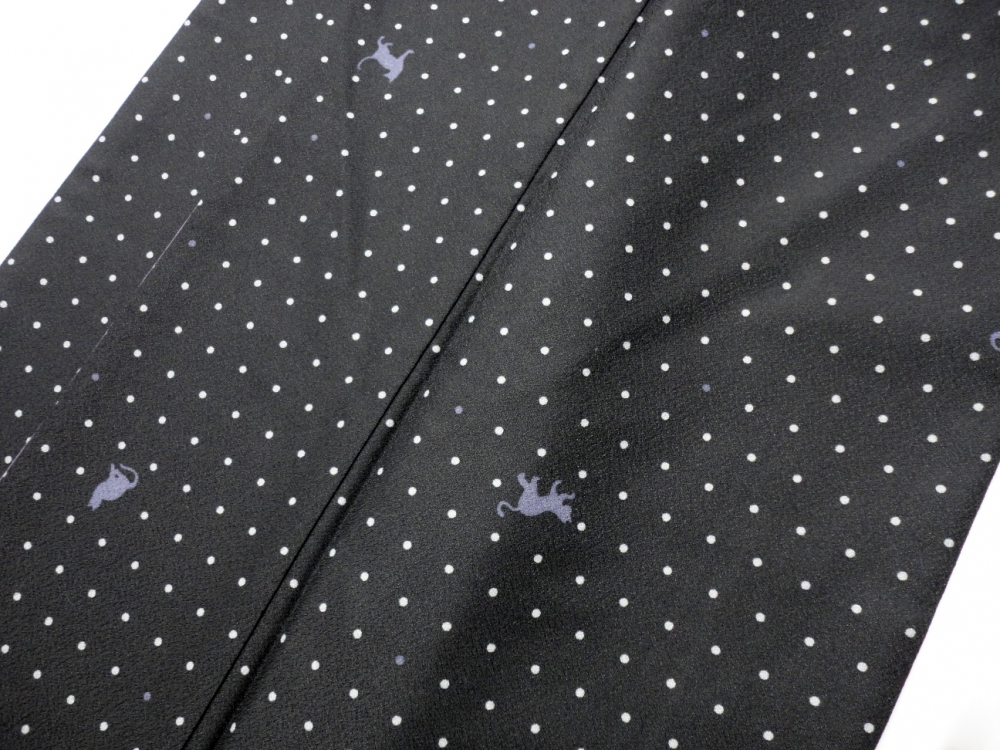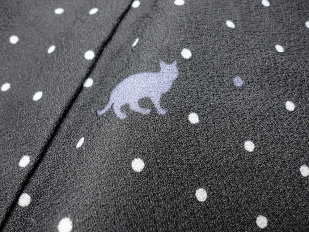 ○雅星○超美!!ブラック*猫 ドット♪洗える小紋 袷 裄65.5丈165ロング