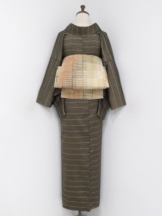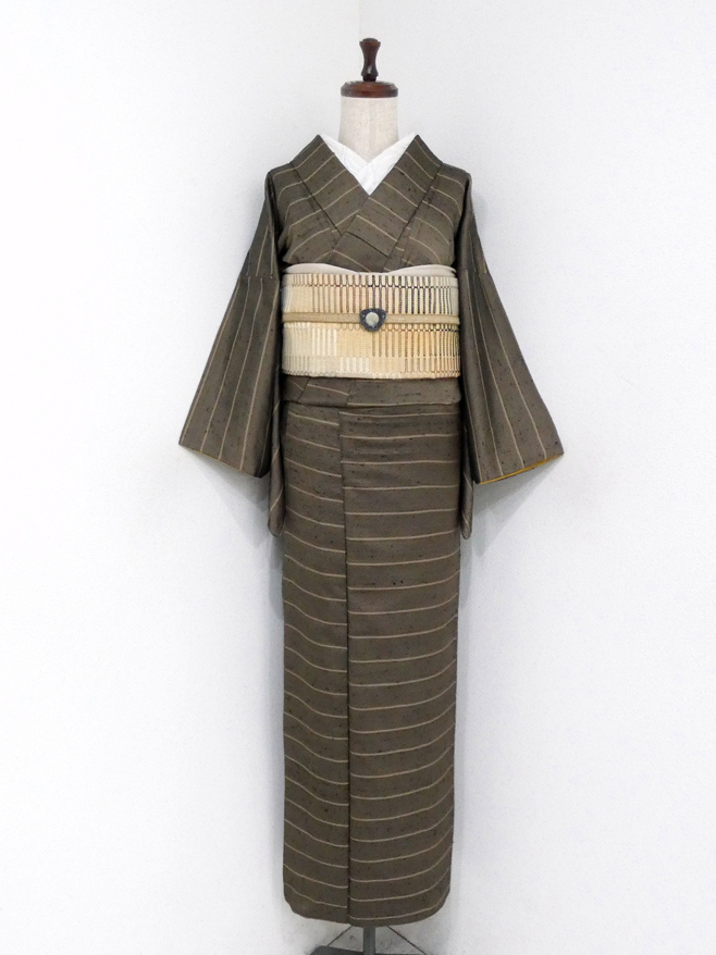 新着商品◆雅星◆超美!!ブラウン*横段 シマシマ お召し 正絹袷 裄67丈157