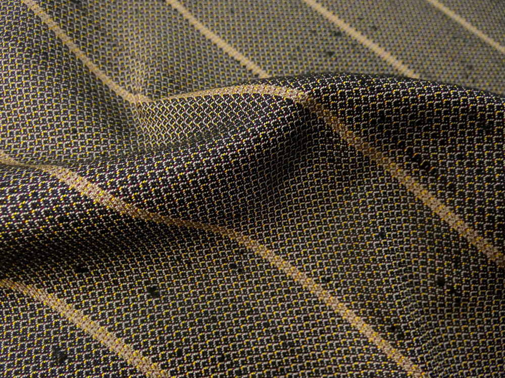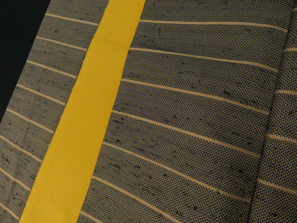 横段模様、髭紬のように黒い糸の出た織りをしています。