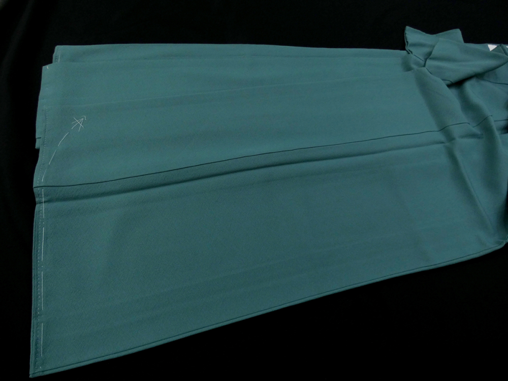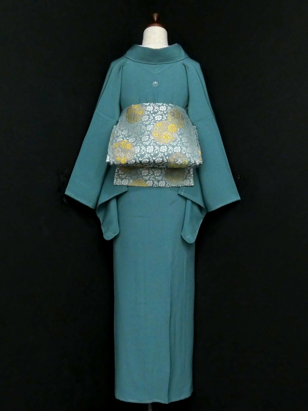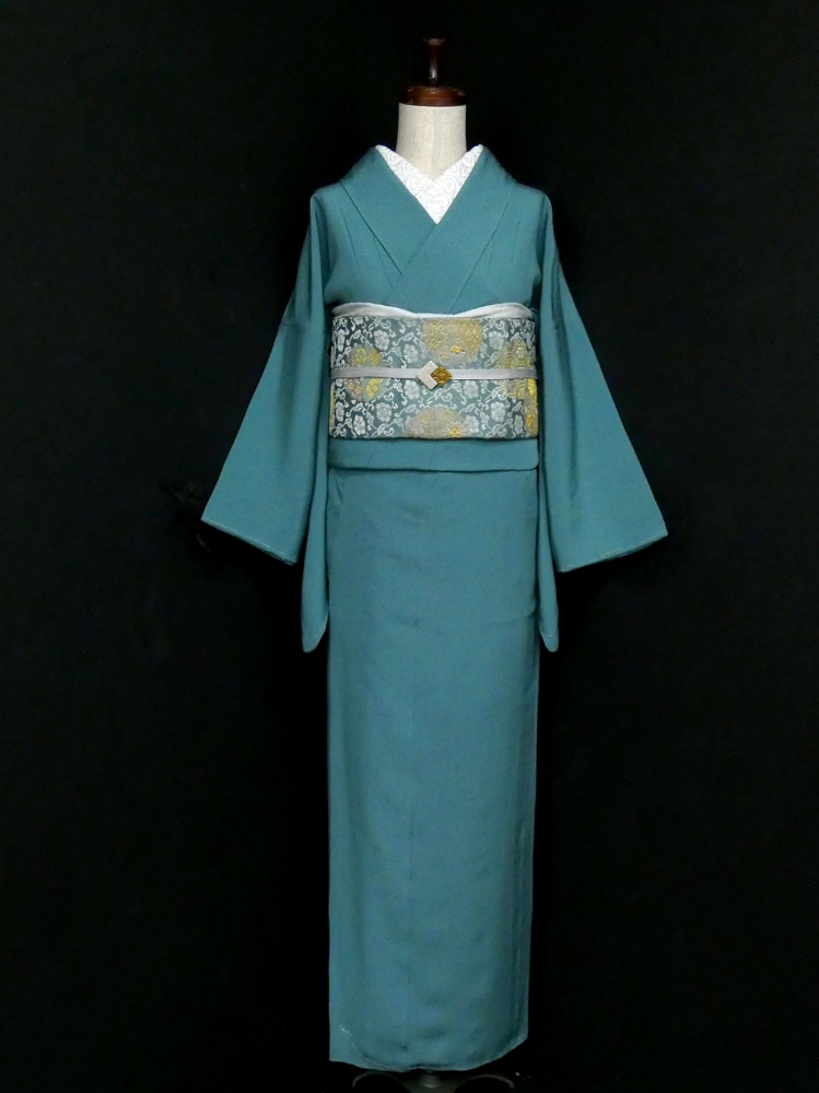 泥染め特有の深い色味の青緑ベース、しなやかで落ち感も綺麗な上質な正絹地。