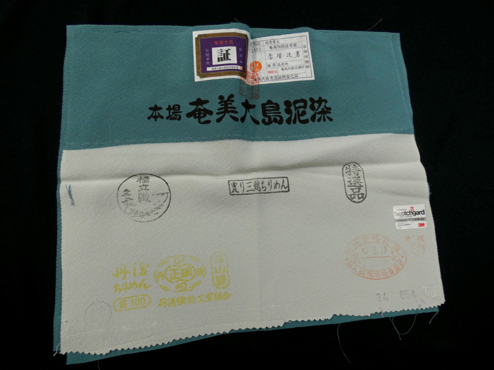 新着商品◆雅星◆未使用超美!!青緑色*本場奄美大島泥染 一つ紋色無地 正絹袷 裄64.5丈157