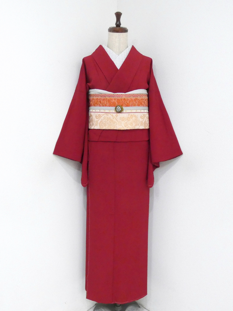 ◆雅星◆未使用超美!!レッド*【きもの英】一つ紋洗える 色無地 袷 裄63.5丈159 販売価格 46,800円 (税込) 購入数 \送料無料/ カートに入れる この商品について問い合わせる お気に入り 特定商取引法に基づく表記 コーディネートで使用している商品 ◆雅星◆美品!!オレンジ系*シマシマ 唐花文 正絹六通《洒落袋帯》 29,800円(税込) ★雅星本店オリジナル★新品!!プラチナ*シマシマ 銀通し 帯揚げ 正絹 【クリックポスト発送】 15,400円(税込) ★雅星本店オリジナル★新品!!プラチナ*帯締め 房付き四分紐 正絹【クリックポスト発送】 14,800円(税込) 商品詳細 状態ランク: ★★★★★ 最高級の洗える着物専門店【きもの英】謹製! マットなシボの大きい縮緬地 こだわりの帯や小物もよく映え、着こなしのテイスト選ばず幅広い着こなしが楽しめます♪ 縫いの一つ紋入り、様々なフォーマルな場面で重宝する色無地です。 《袷・広衿》身長154〜164cm位までの方にオススメです。 それ以上の方はミセル裾除けホムシュヘムなどと合わせても♪ しつけ付き、シミ汚れのない超美品です。 着物のみの価格で、帯・小物は含まれておりません。 サイズ・素材 裄 63.5cm 肩身丈 159cm 袖丈 48.5cm 袖幅 31.5cm 前幅 23cm 後ろ幅 29cm 内揚げ 0cm 縫込み(袖側) 2.5cm 縫込み(肩側) 4cm 素材 ポリエステル 状態ランクについて ★★★★★ 超美品・新品・未使用品です。 ★★★★ 中古品ですがダメージの無いお品です。 ★★★ 薄ジミなどがありますが着用時には目立ちません。 ★★ 工夫次第で十分着用可能なお買い得品です ★ 大きめのシミがありますので、リメイク材料等にどうぞ。 _fo