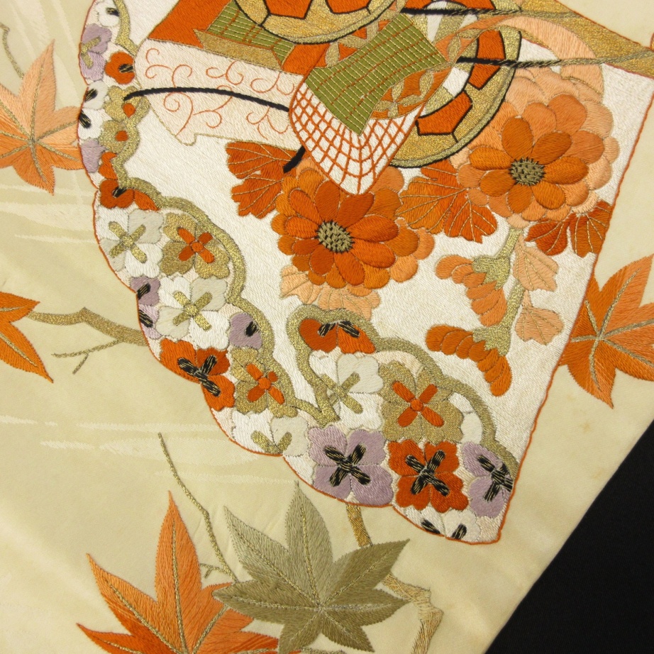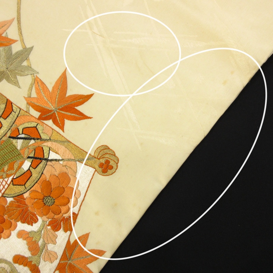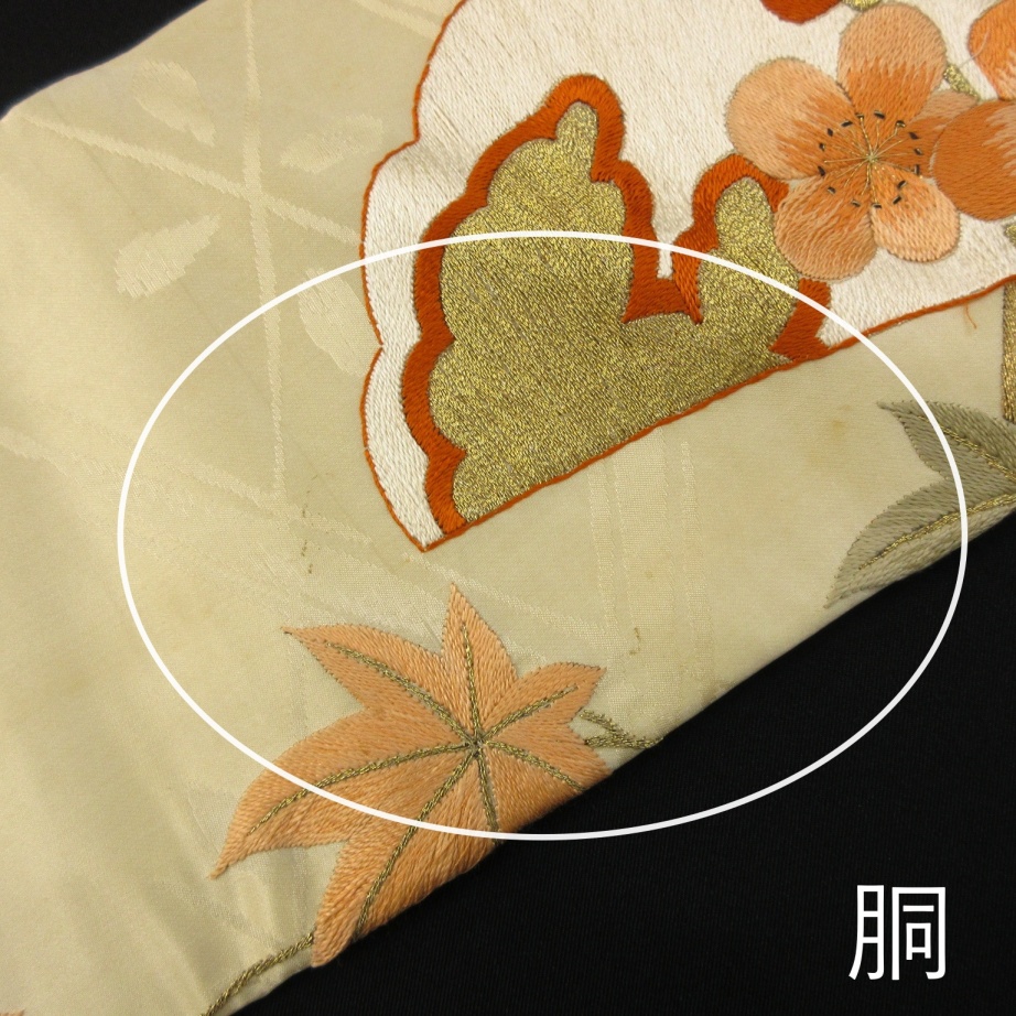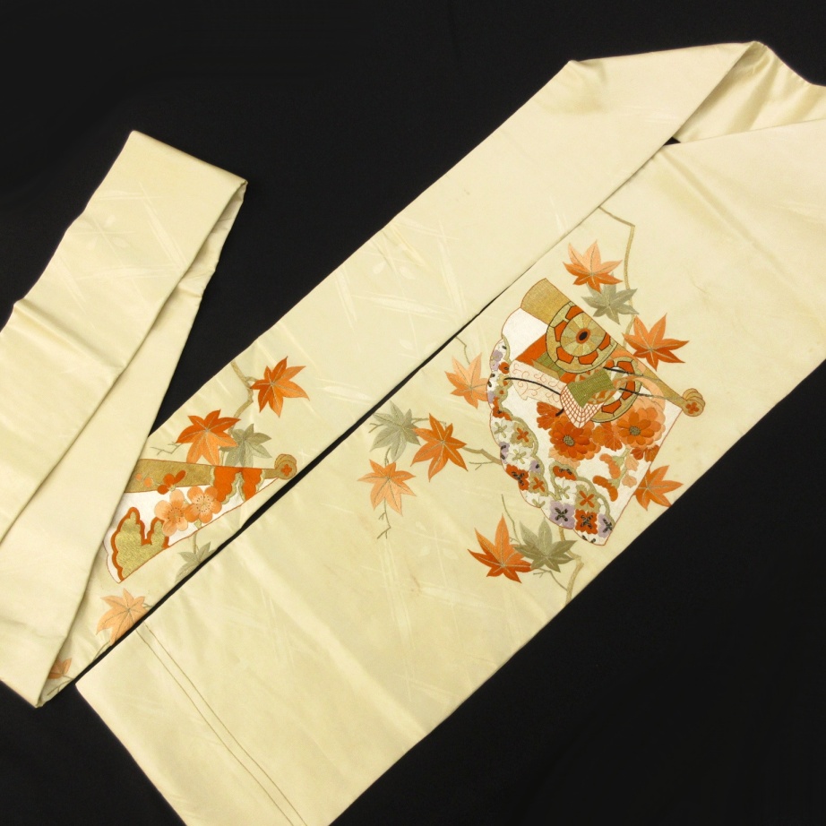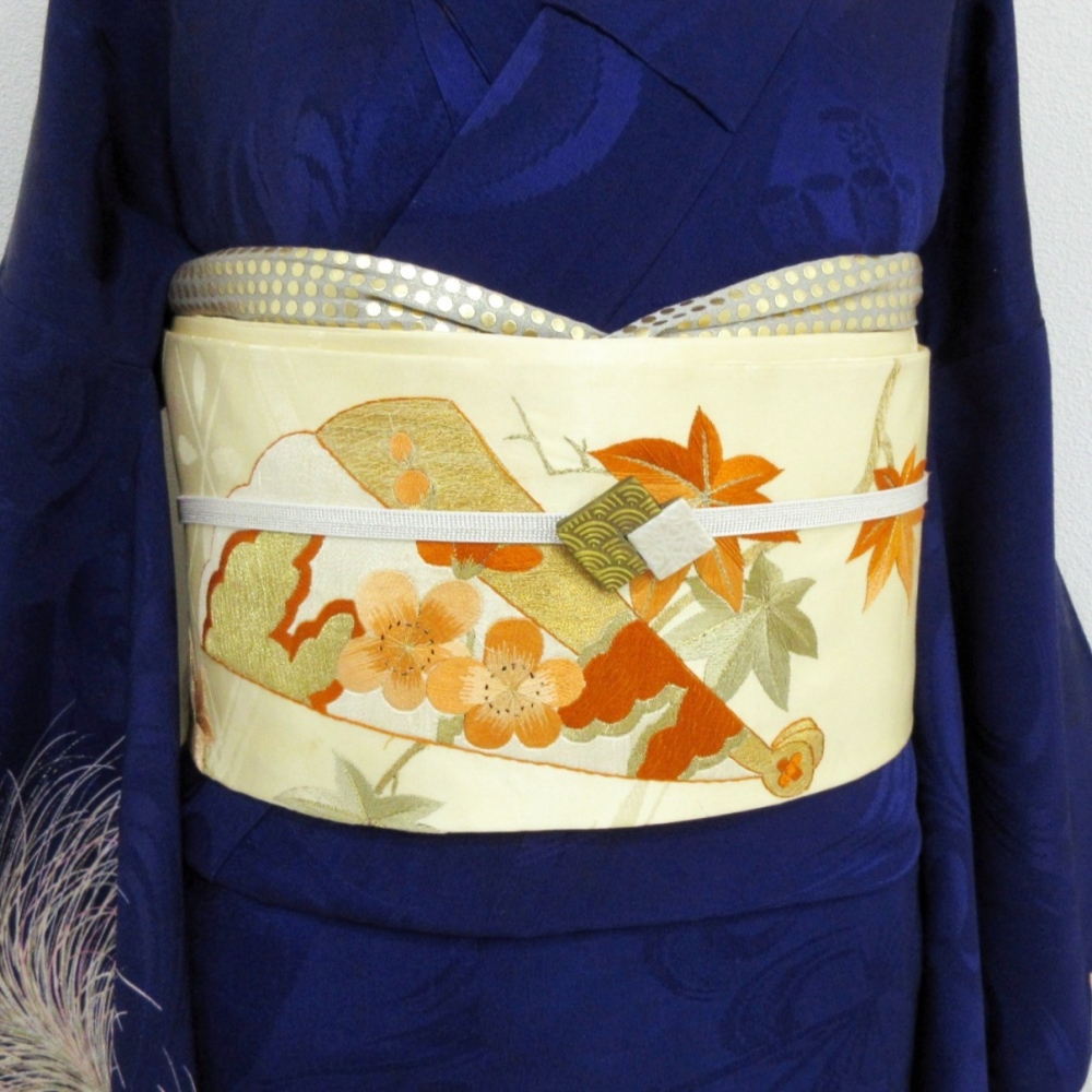 ■雅星■アンティーク!!アイボリー*刺繍 扇子 紅葉♪正絹九寸《名古屋帯》 販売価格 24,800円 (税込) 購入数 \送料無料/ カートに入れる この商品について問い合わせる お気に入り 特定商取引法に基づく表記 商品詳細 状態ランク: ★★★ 光沢感の上品な業平菱地紋の繻子生地、 御所車と菊の大扇子、みっちりとした刺繍がレトロな雰囲気、 スタイリングのアクセントにも最適ですし、現代のお着物と合わせると一気にこなれた印象に◎ 帯が主役のコーデも楽しめるアンティークの九寸名古屋帯です。 画像の様な時代なりの薄汚れがありますが、 アンティークに慣れた方でしたら十分にご着用頂けます。 帯のみの価格で、着物・小物は含まれておりません。 サイズ・素材 長さ 30.5cm×368cm 素材 正絹 状態ランクについて ★★★★★ 超美品・新品・未使用品です。 ★★★★ 中古品ですがダメージの無いお品です。 ★★★ 薄ジミなどがありますが着用時には目立ちません。 ★★ 工夫次第で十分着用可能なお買い得品です ★ 大きめのシミがありますので、リメイク材料等にどうぞ。 _an