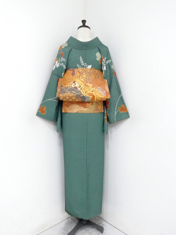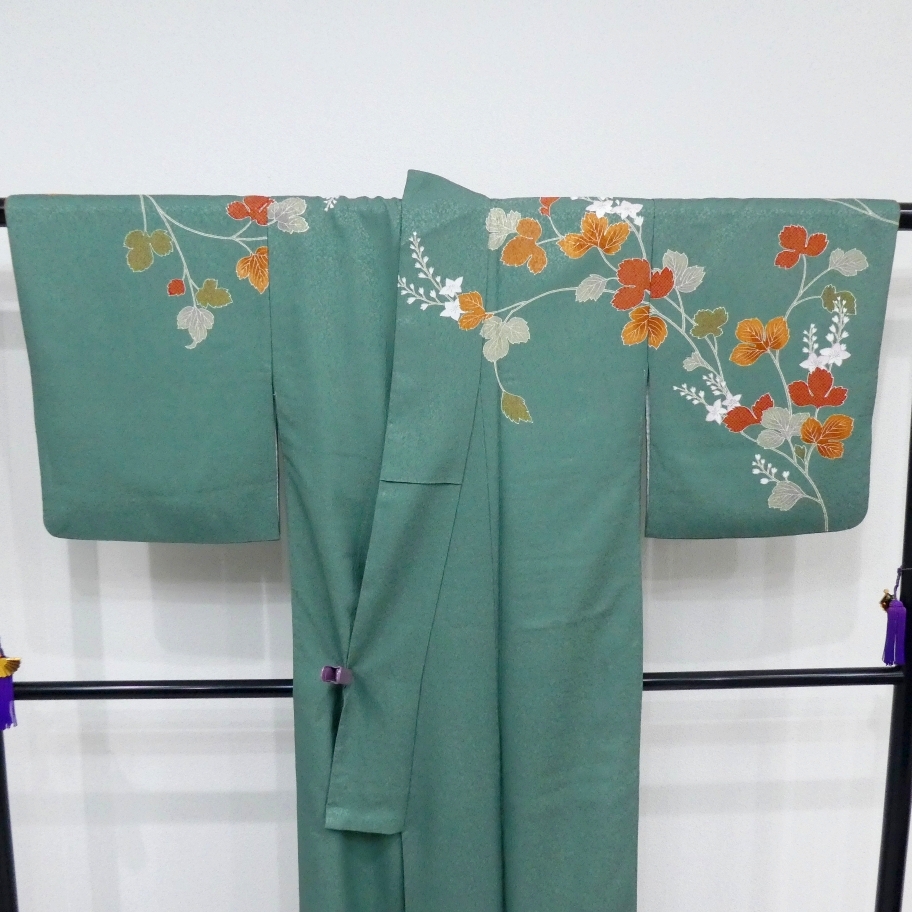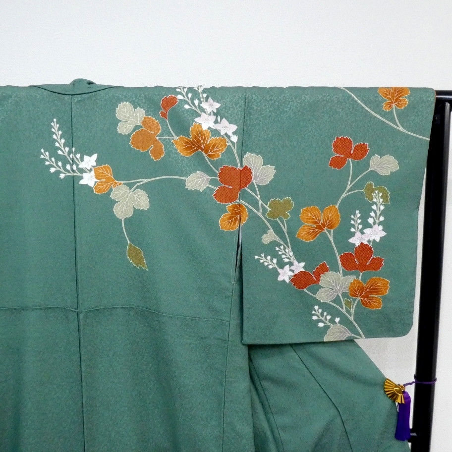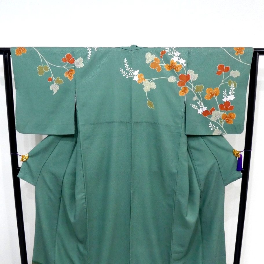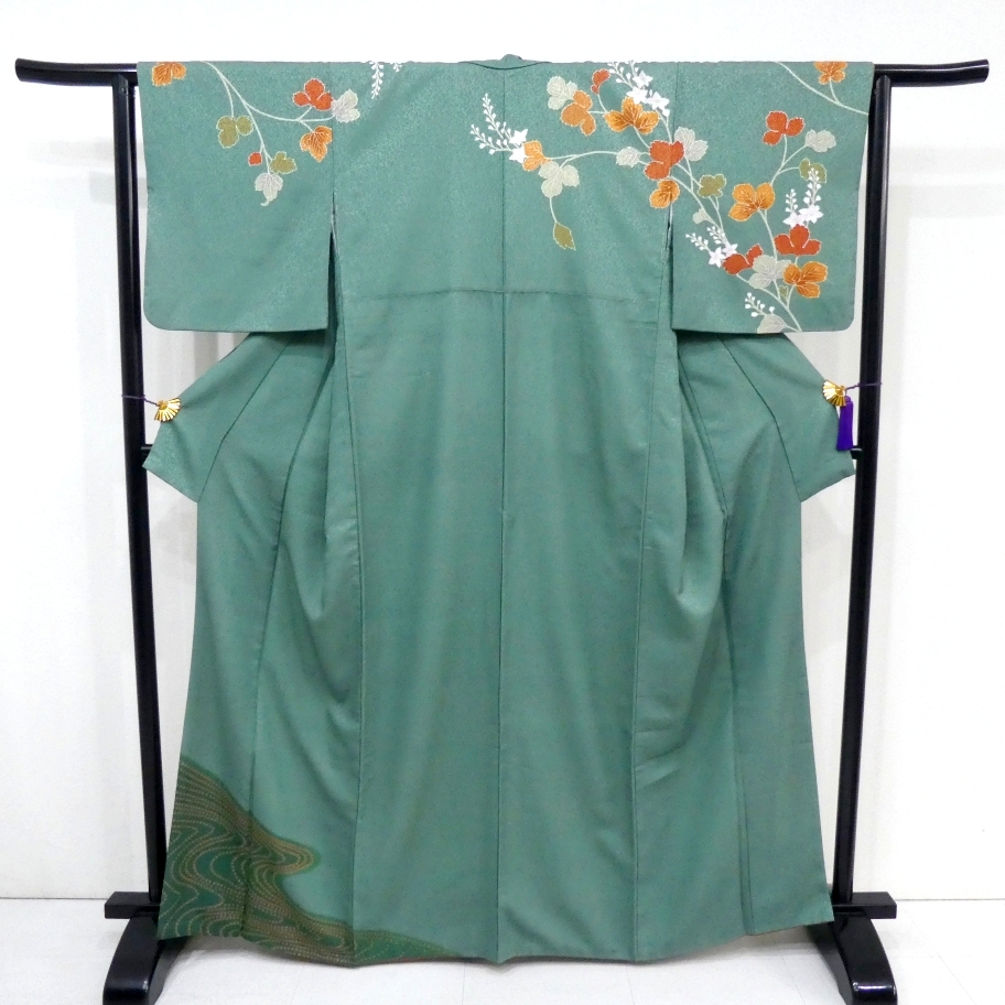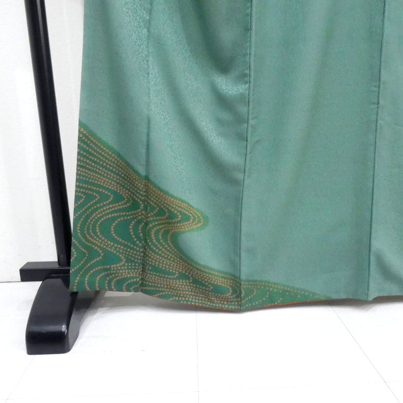 〓雅星〓美品!!グリーン*流水 リーフ文♪洗える訪問着 袷 裄62.5丈165ロング 販売価格 27,800円 (税込) 購入数 \送料無料/ カートに入れる この商品について問い合わせる お気に入り 特定商取引法に基づく表記 コーディネートで使用している商品 〓雅星〓美品!!オレンジ*道長取り 鳳凰丸文♪正絹六通《袋帯》 32,800円(税込) ★雅星本店オリジナル★新品!!プラチナ*帯締め 房付き四分紐 正絹【クリックポスト発送】 14,800円(税込) 商品詳細 状態ランク: ★★★ 明るいグリーンベース、凸凹とした膨れ織地なので表情があります。 裾には流水文、上半身には流れるように横へ広がるリーフ文がデザインされています。 人の目に留まりやすい上半身は華やかに、裾は控えめな柄付けですっきりと◎ 女性らしく凛とした着姿が叶う洗える訪問着です。 天気のすぐれないフォーマルシーンはもちろん、洗える素材なのでお稽古着として活躍してくれる1枚です。 《袷・広衿》身長160〜170cm位までの方にオススメです。 ☆身幅がやや細身なのでスリムサイズをお探しの方にもぜひ! 八掛に薄シミは見られますが表地に影響はありません。 その他目立つダメージのないグッドコンディションなお品です。 着物のみの価格で、帯・小物は含まれておりません。 サイズ・素材 裄 62.5cm 肩身丈 165cm 袖丈 47.5cm 袖幅 33cm 前幅 23cm 後ろ幅 28.5cm 内揚げ 0cm 縫込み(袖側) 1cm 縫込み(肩側) 5cm 素材 ポリエステル 状態ランクについて ★★★★★ 超美品・新品・未使用品です。 ★★★★ 中古品ですがダメージの無いお品です。 ★★★ 薄ジミなどがありますが着用時には目立ちません。 ★★ 工夫次第で十分着用可能なお買い得品です ★ 大きめのシミがありますので、リメイク材料等にどうぞ。 _fo