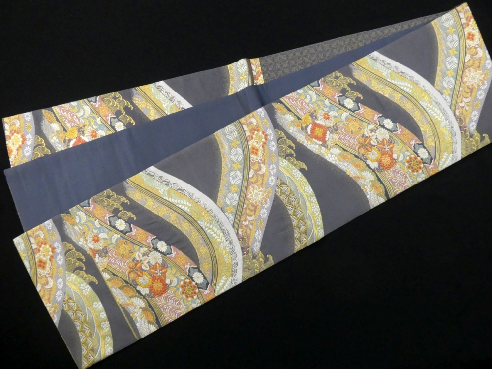 〓雅星〓未使用超美!!グレー*花譜流彩文♪正絹六通《袋帯》 販売価格 39,800円 (税込) 購入数 \送料無料/ カートに入れる この商品について問い合わせる お気に入り 特定商取引法に基づく表記 商品詳細 状態ランク: ★★★★★ 合わせやすいグレーベースに、色とりどりの吉祥文が曲線状にあしらわれ落ち着きのある上品な華やかさを感じます。 重厚感のある色柄ですが、しなやかで軽い締め心地◎ 綺麗目な正統派の着こなしと良く合い、訪問着から色無地まで様々なフォーマルシーンで活躍してくれる袋帯です。 目立つシミ・汚れのない未使用超美のお品です。 帯のみの価格で、着物・小物は含まれておりません。 サイズ・素材 長さ 31cm×448cm 素材 正絹 状態ランクについて ★★★★★ 超美品・新品・未使用品です。 ★★★★ 中古品ですがダメージの無いお品です。 ★★★ 薄ジミなどがありますが着用時には目立ちません。 ★★ 工夫次第で十分着用可能なお買い得品です ★ 大きめのシミがありますので、リメイク材料等にどうぞ。 _fo