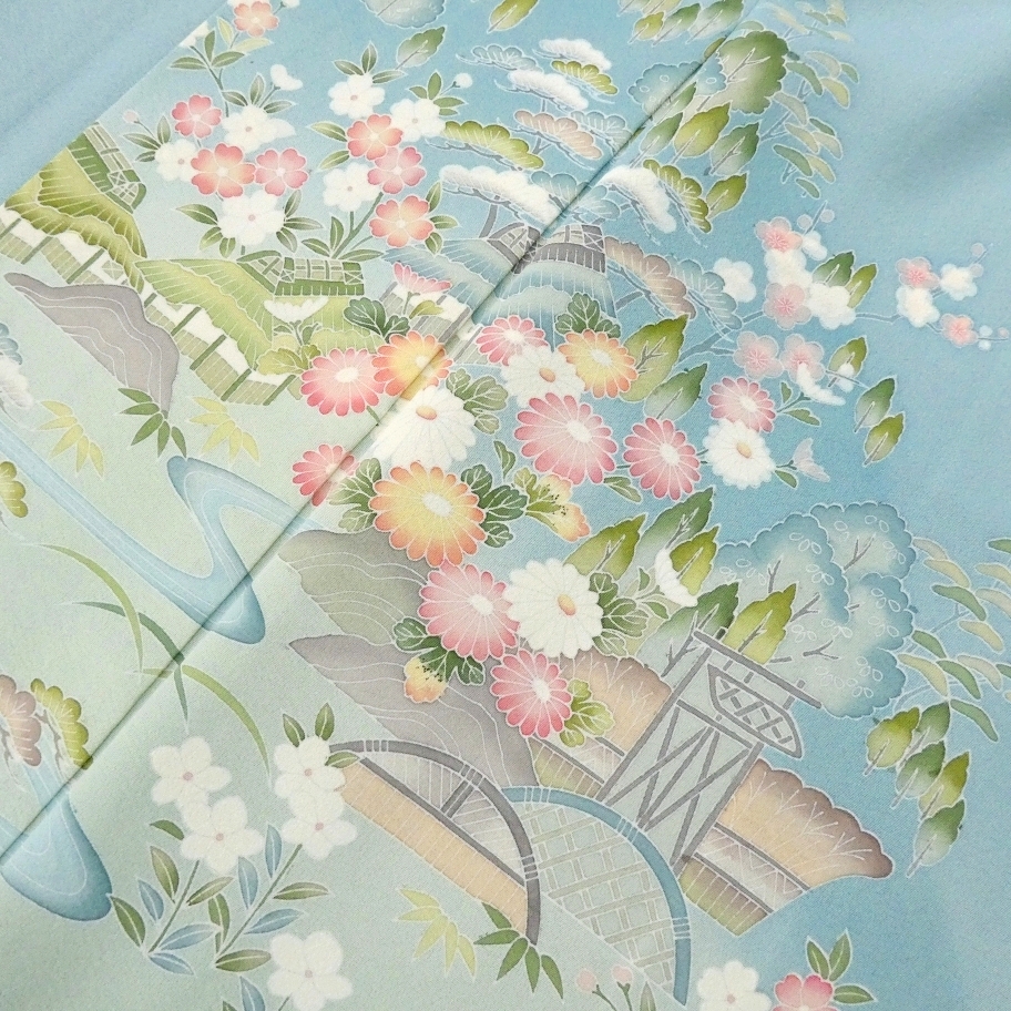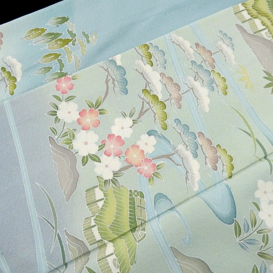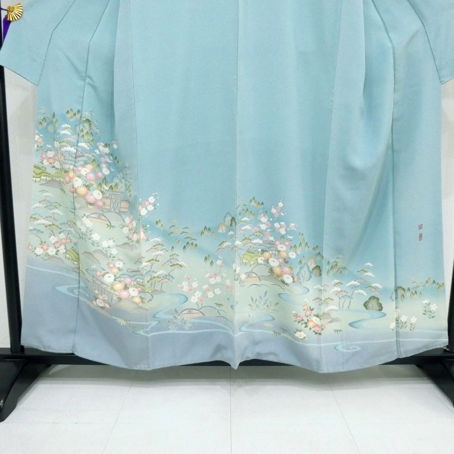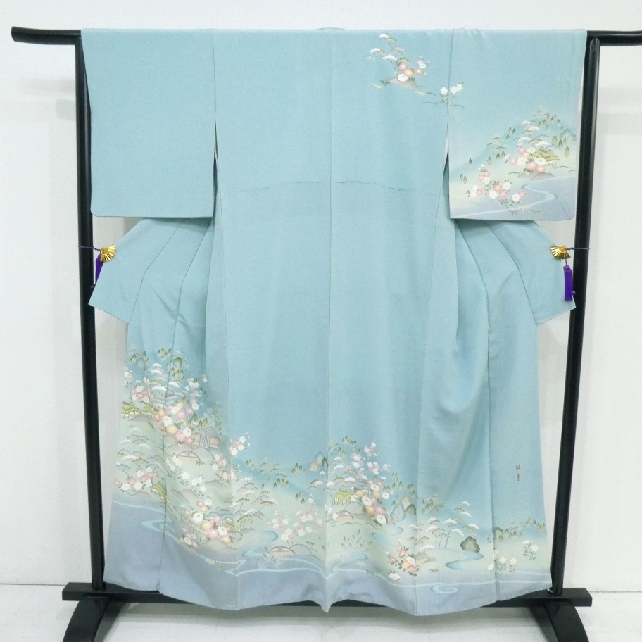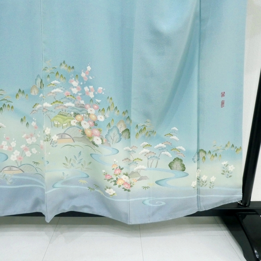 〓雅星〓美品!!瓶覗色*加賀友禅【百貫達雄】風景文♪訪問着 正絹袷 裄64丈158 販売価格 42,800円 (税込) 購入数 \送料無料/ カートに入れる この商品について問い合わせる お気に入り 特定商取引法に基づく表記 コーディネートで使用している商品 〓雅星〓未使用超美!!グレー*花譜流彩文♪正絹六通《袋帯》 39,800円(税込) ★雅星本店オリジナル★新品!!プラチナ*シマシマ 銀通し 帯揚げ 正絹 【クリックポスト発送】 15,400円(税込) ★雅星本店オリジナル★新品!!プラチナ*帯締め 房付き四分紐 正絹【クリックポスト発送】 14,800円(税込) 商品詳細 状態ランク: ★★★ 加賀友禅作家【百貫達雄】氏のお品です。 しっとりずっしりとした上質な正絹地です。 やや緑がかった淡い水色系ベースに家屋や流水・四季の花が描かれた風景文。 清潔感あふれる友禅の優美さが素敵な訪問着です。 お茶席から正統派のフォーマルシーンまで幅広くお楽しみ下さい。 《袷・広衿》身長153〜163cm位までの方にオススメです。 右前袖・左衿元付近に薄シミが見られますが軽度です。 その分お値下げしていますのでお手入れに出されても惜しくないお値段ですよ! その他酷く目立つダメージはなくグッドコンディションなお品です。 着物のみの価格で、帯・小物は含まれておりません。 サイズ・素材 裄 64cm 肩身丈 158cm 袖丈 49cm 袖幅 33cm 前幅 24.5cm 後ろ幅 29.5cm 内揚げ 13cm 縫込み(袖側) 2.5cm 縫込み(肩側) 4cm 素材 正絹 状態ランクについて ★★★★★ 超美品・新品・未使用品です。 ★★★★ 中古品ですがダメージの無いお品です。 ★★★ 薄ジミなどがありますが着用時には目立ちません。 ★★ 工夫次第で十分着用可能なお買い得品です ★ 大きめのシミがありますので、リメイク材料等にどうぞ。 _fo