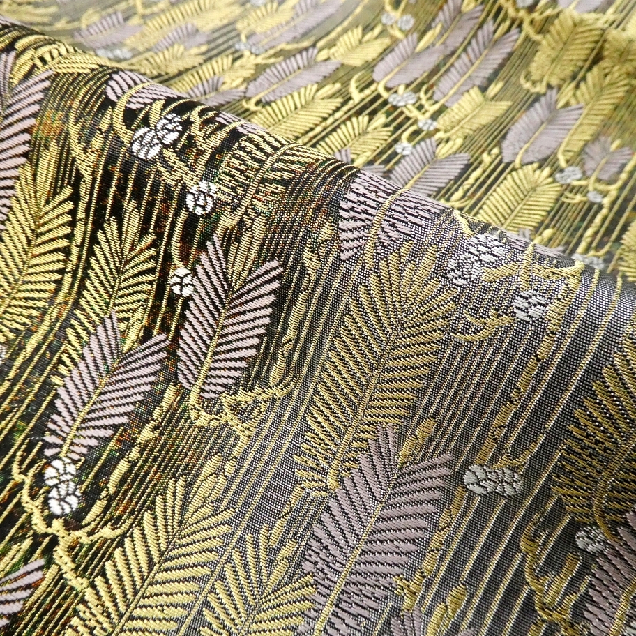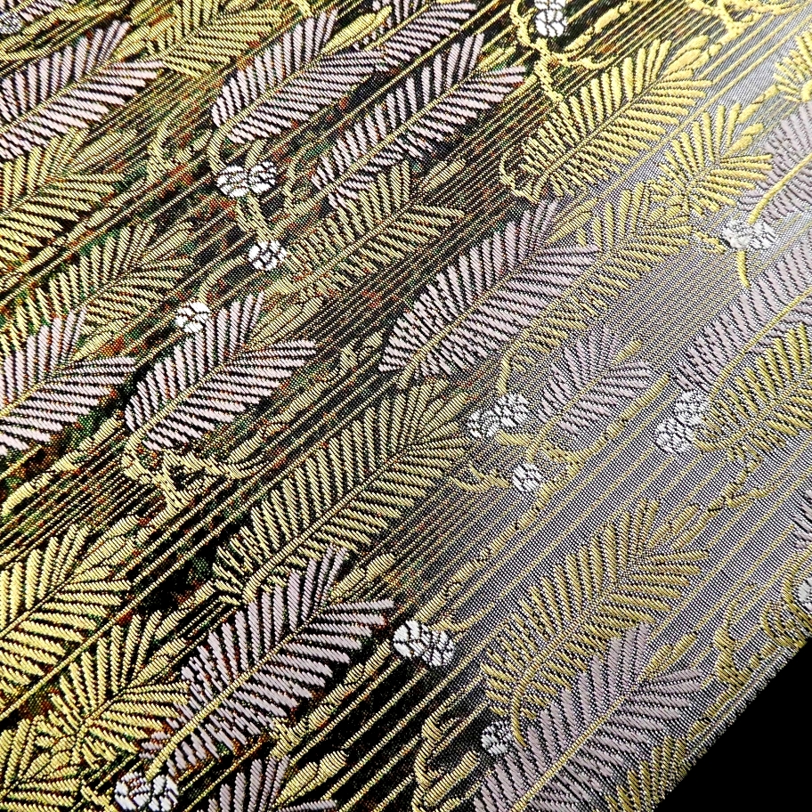 〓雅星〓未使用美品!!ゴールド系*大王松文♪正絹六通《袋帯》 販売価格 39,800円 (税込) 購入数 \送料無料/ カートに入れる この商品について問い合わせる お気に入り 特定商取引法に基づく表記 商品詳細 状態ランク: ★★★ 鈍く煌めく箔暈しベースに金糸の煌めく大王松文が粋で豪華なデザイン。 重厚感のある豪華な色柄ですが、しなやかで軽い締め心地。 合わせるお着物をぐっと格上げしてくれる大変上質な袋帯です。 留袖・お振袖・訪問着・付下げ等のフォーマルシーンからパーティまで幅広くお使いください。 お太鼓付近にキズがありますが、未使用品なので保管時に付いたものだと思います。 その他目立つダメージのない、撮影時のみ使用の超美のお品です。 帯のみの価格で、着物・小物は含まれておりません。 サイズ・素材 長さ 31cm×439cm 素材 正絹 状態ランクについて ★★★★★ 超美品・新品・未使用品です。 ★★★★ 中古品ですがダメージの無いお品です。 ★★★ 薄ジミなどがありますが着用時には目立ちません。 ★★ 工夫次第で十分着用可能なお買い得品です ★ 大きめのシミがありますので、リメイク材料等にどうぞ。 _fo