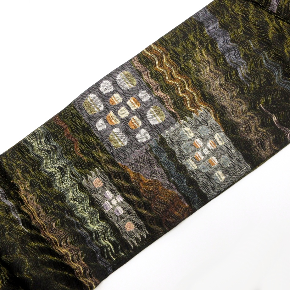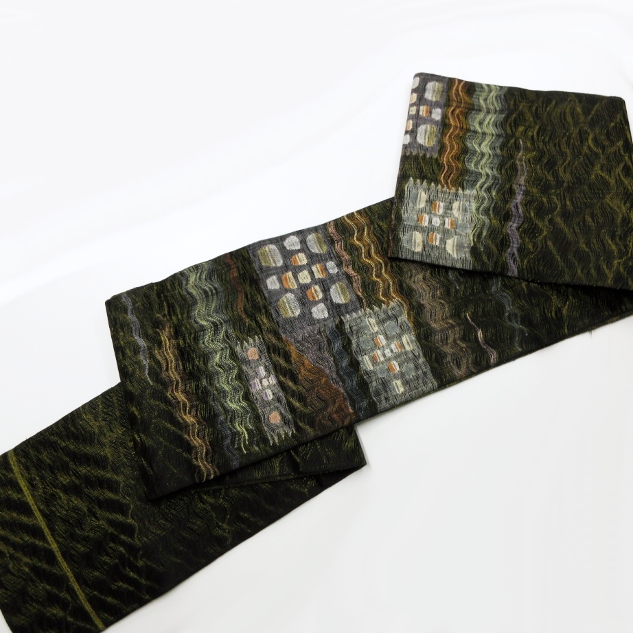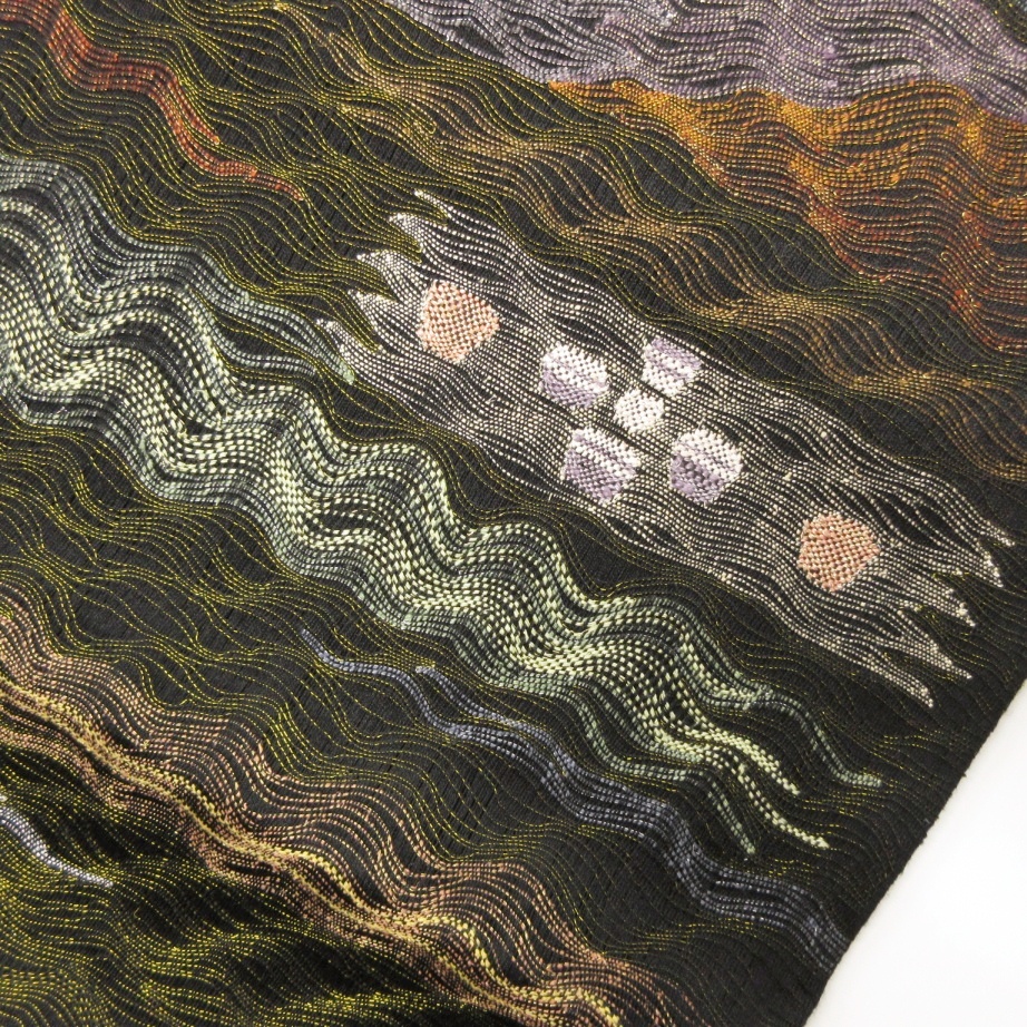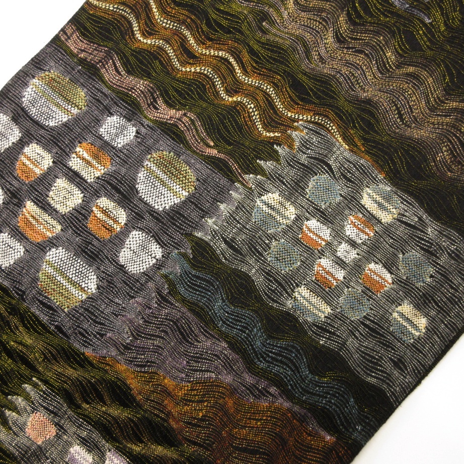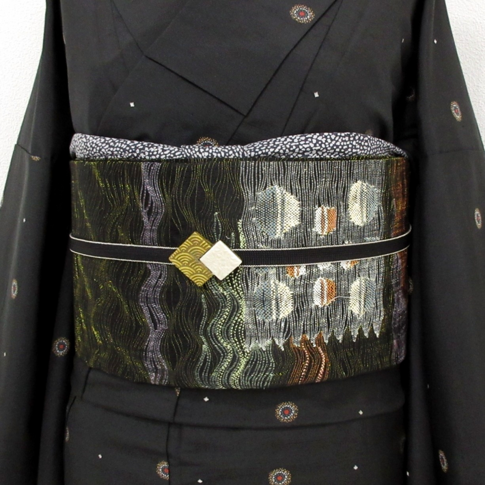 ■雅星■超美!!ブラック*すくい織 金糸 WAVE ドット♪正絹六通 《洒落袋帯》 販売価格 39,800円 (税込) 購入数 \送料無料/ カートに入れる この商品について問い合わせる お気に入り 特定商取引法に基づく表記 商品詳細 状態ランク: ★★★★★ ブラックベースの透け感のある軽い織地。 シンプルなよろけラインと水玉があしらわれ、全体的に金糸が織り込まれエレガントな印象! 特に春先や秋口のすっきりとした軽快な装いを楽しみたい時にはおすすめな洒落袋帯です! シミ汚れの無い大変綺麗なお品です!(撮影時のみ使用) 帯のみの価格で、着物・小物は含まれておりません。 サイズ・素材 長さ 31cm×454cm 素材 正絹 状態ランクについて ★★★★★ 超美品・新品・未使用品です。 ★★★★ 中古品ですがダメージの無いお品です。 ★★★ 薄ジミなどがありますが着用時には目立ちません。 ★★ 工夫次第で十分着用可能なお買い得品です ★ 大きめのシミがありますので、リメイク材料等にどうぞ。
