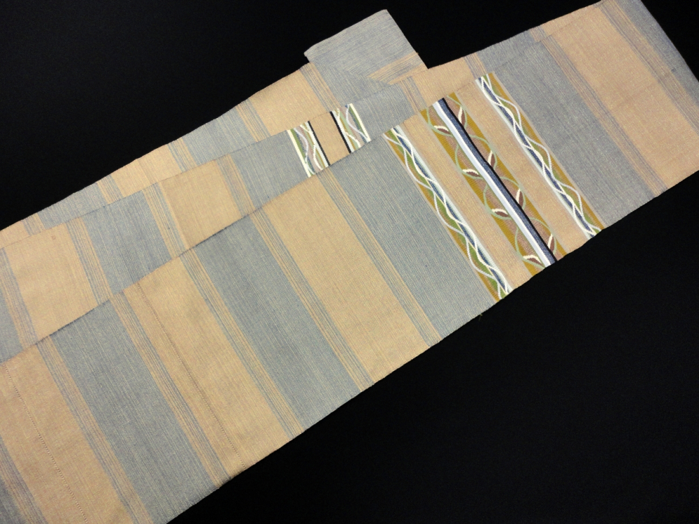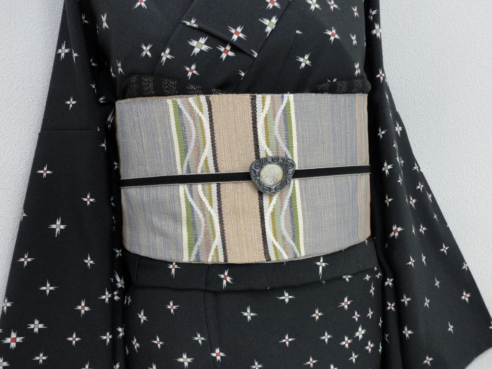 ○雅星○20%OFF!!美品!!ベージュ×ネイビーブルー*よろけライン シマシマ 正絹八寸《名古屋帯》 17,800円のところ 販売価格 14,240円 (税込) 購入数 \送料無料/ カートに入れる この商品について問い合わせる お気に入り 特定商取引法に基づく表記 商品詳細 状態ランク: ★★★ ベージュ×ネイビーブルーのシマシマ、所々金彩で織られているので煌びやか◎ お太鼓、胴にはこっくりカラーのシマシマとよろけラインのデザインがシンプルかわいい♪ 薄くてしなやかなので軽やかな締め心地。 綺麗目な正統派からカジュアルコーデまで幅広くお楽しみ頂ける八寸名古屋帯です。 画像の様に締め跡がありますがシミ汚れのないお品物です◎ 帯のみの価格で、着物・小物は含まれておりません。 サイズ・素材 長さ 31cm×376cm 素材 正絹 状態ランクについて ★★★★★ 超美品・新品・未使用品です。 ★★★★ 中古品ですがダメージの無いお品です。 ★★★ 薄ジミなどがありますが着用時には目立ちません。 ★★ 工夫次第で十分着用可能なお買い得品です ★ 大きめのシミがありますので、リメイク材料等にどうぞ。