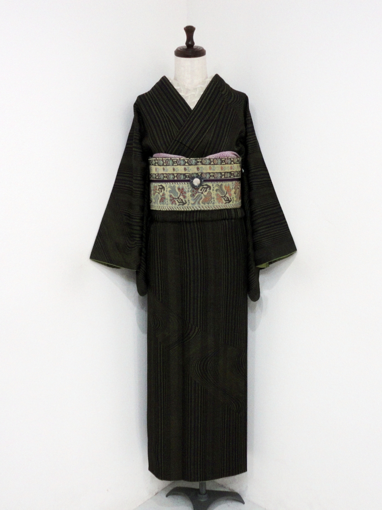 ○雅星○良品!!ブラック×カーキ*シマシマ♪紬地 小紋 正絹袷 裄64丈160ロング 販売価格 32,800円 (税込) 購入数 \送料無料/ カートに入れる この商品について問い合わせる お気に入り 特定商取引法に基づく表記 コーディネートで使用している商品 ○雅星○美品!!カーキベージュ*オリエンタル模様♪正絹九寸《名古屋帯》 19,800円(税込) ★雅星本店オリジナル★新品*リバーシブル 縁あり三分紐【クリックポスト発送】 6,600円(税込) 商品詳細 状態ランク: ★★★ ふんわり柔らかな手触りが心地良い紬地。 ブラック×カーキベースのシマシマ模様♪ 帯や小物で人と差のつく着こなしが楽しめます◎ 綺麗目な正統派からカジュアルコーデまで幅広くお楽しみ頂ける上質小紋です。 《袷・広衿》身長155〜165cm位までの方にオススメです。 両衿、右前袖に薄シミがありますが、ご着用目立ちません。 その他目立ったシミ汚れはなくお気軽にお楽しみ頂けます。 着物のみの価格で、帯・小物は含まれておりません。 サイズ・素材 裄 64cm 肩身丈 160cm 袖丈 45cm 袖幅 32.5cm 前幅 24cm 後ろ幅 28cm 内揚げ 4cm 縫込み(袖側) 3cm 縫込み(肩側) 3.5cm 素材 正絹 状態ランクについて ★★★★★ 超美品・新品・未使用品です。 ★★★★ 中古品ですがダメージの無いお品です。 ★★★ 薄ジミなどがありますが着用時には目立ちません。 ★★ 工夫次第で十分着用可能なお買い得品です ★ 大きめのシミがありますので、リメイク材料等にどうぞ。
