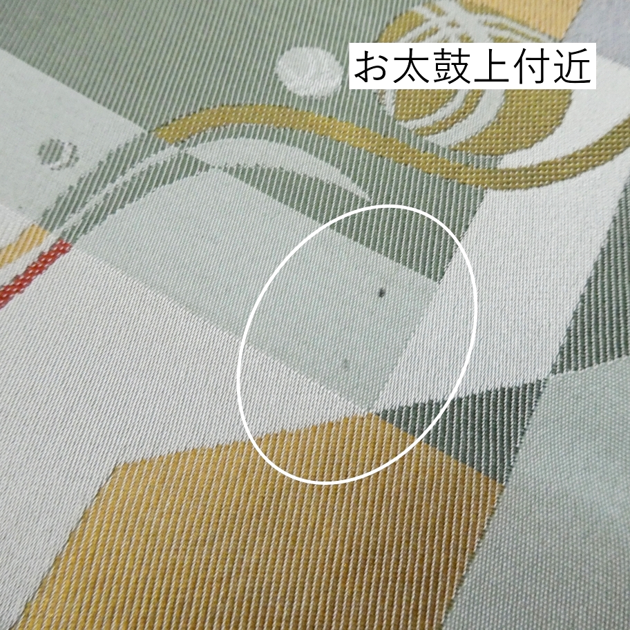 〓雅星〓20%OFF!!美品!!グレイッシュ*幾何学 毬文♪洗える《京袋帯》 14,800円のところ 販売価格 11,840円 (税込) 購入数 \送料無料/ カートに入れる この商品について問い合わせる お気に入り 特定商取引法に基づく表記 商品詳細 状態ランク: ★★★ 京袋帯は、普通の袋帯に比べ短く、名古屋帯と同じように結ぶ帯です。 小紋、紬、ウールなどの普段着に合わせて頂けます。 グレイッシュなグリーン系ベースの幾何学文、コロコロ転がる毬もデザインされています。 古典な印象も残しつつモダンなスタイリングが叶うアイテムです。 綺麗目な正統派からカジュアルコーデまで幅広くお楽しみ頂ける洗える京袋帯です。 お太鼓上に点汚れ(撮影時は隠れました)、反時計回り胴柄付近に薄汚れが見られますが軽度なので注意深く見なけれな気づかない程度です。 着後に酷く目立つ大きなシミ・汚れはないので、色柄を気に入ってくださった方に是非! 帯のみの価格で、着物・小物は含まれておりません。 サイズ・素材 長さ 31cm×372cm 素材 ポリエステル 状態ランクについて ★★★★★ 超美品・新品・未使用品です。 ★★★★ 中古品ですがダメージの無いお品です。 ★★★ 薄ジミなどがありますが着用時には目立ちません。 ★★ 工夫次第で十分着用可能なお買い得品です ★ 大きめのシミがありますので、リメイク材料等にどうぞ。