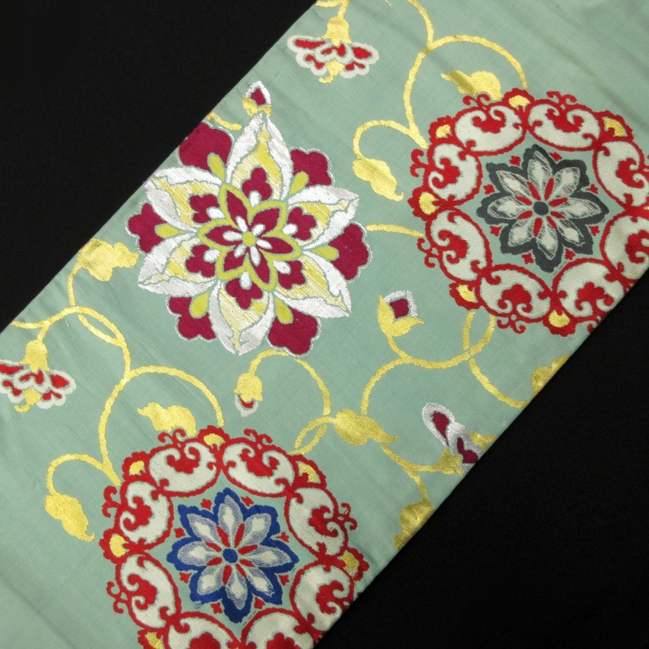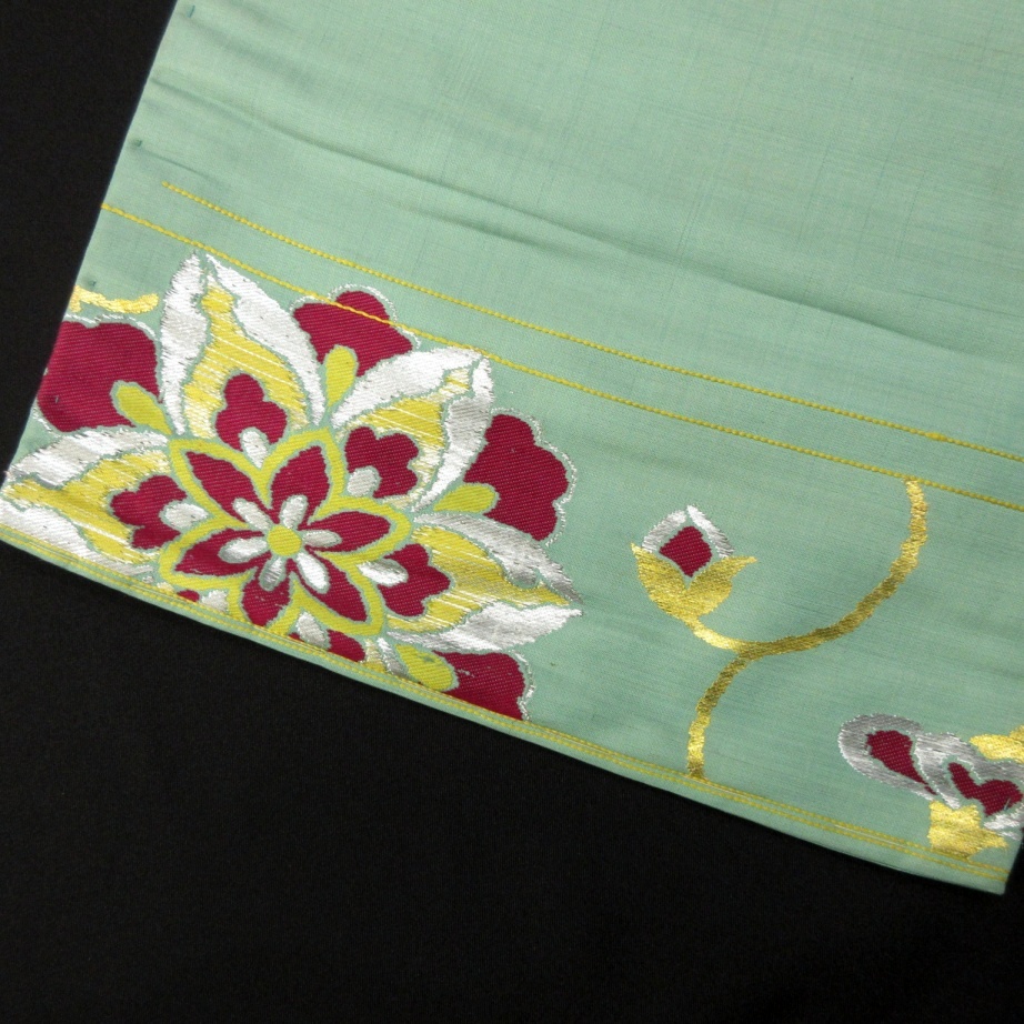 ■雅星■20%OFF!!アンティーク!!オパールグリーン*宝相華文*正絹九寸《名古屋帯》 17,800円のところ 販売価格 14,240円 (税込) 購入数 \送料無料/ カートに入れる この商品について問い合わせる お気に入り 特定商取引法に基づく表記 商品詳細 状態ランク: ★★★★ 光沢感ある柔らかく結びやすい正絹地。 乳白がかったやや灰色みの緑色ベースに宝相華文、煌びやかな箔織であしらわれ日本古来の趣を感じます。 レトロ感たっぷり、粋でこなれた着こなしが楽しめる九寸名古屋帯です。 ひどく目立つシミ汚れはなく時代物に慣れた方はまだまだお楽しみ頂けます。 帯のみの価格で、着物・小物は含まれておりません。 サイズ・素材 長さ 29.5cm×323cm 素材 正絹 状態ランクについて ★★★★★ 超美品・新品・未使用品です。 ★★★★ 中古品ですがダメージの無いお品です。 ★★★ 薄ジミなどがありますが着用時には目立ちません。 ★★ 工夫次第で十分着用可能なお買い得品です ★ 大きめのシミがありますので、リメイク材料等にどうぞ。 _an