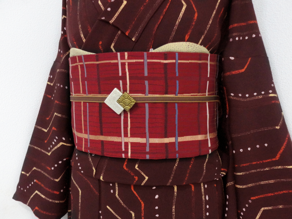 ○雅星○20%OFF!!超美!!レッド*格子 チェック♪洗える《京袋帯》 16,800円のところ 販売価格 13,440円 (税込) 購入数 \送料無料/ カートに入れる この商品について問い合わせる お気に入り 特定商取引法に基づく表記 商品詳細 状態ランク: ★★★★ 京袋帯は、普通の袋帯に比べ短く、名古屋帯と同じように結ぶ帯です。 小紋、紬、ウールなどの普段着に合わせて頂けます。 濃い赤色ベースに金糸であしらわれた煌びやかな格子模様が上品な印象です。 綺麗目な正統派からカジュアルコーデまで幅広くお楽しみ頂ける洗える京袋帯です。 目立つシミ・汚れのない綺麗なお品です。 帯のみの価格で、着物・小物は含まれておりません。 サイズ・素材 長さ 31.5cm×371cm 素材 ポリエステル 状態ランクについて ★★★★★ 超美品・新品・未使用品です。 ★★★★ 中古品ですがダメージの無いお品です。 ★★★ 薄ジミなどがありますが着用時には目立ちません。 ★★ 工夫次第で十分着用可能なお買い得品です ★ 大きめのシミがありますので、リメイク材料等にどうぞ。