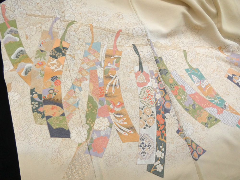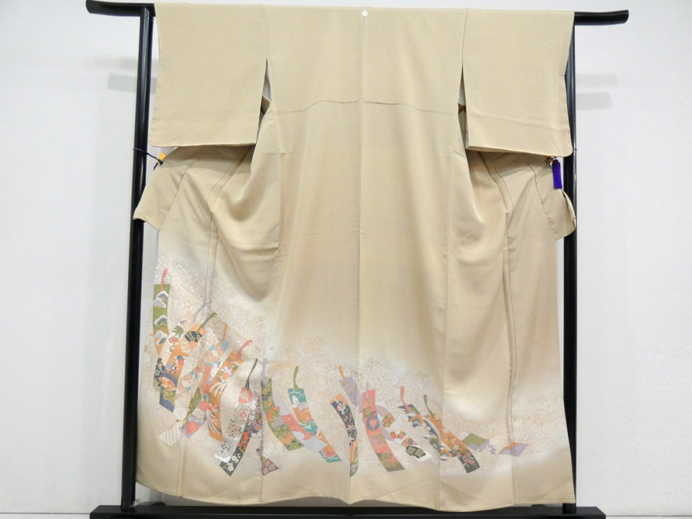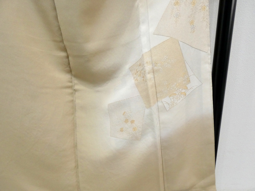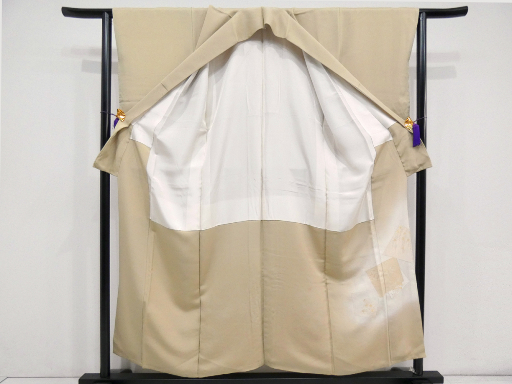 ◆雅星◆未使用超美!!イエローベージュ*短冊に花 古典模様 一つ紋色留袖 正絹袷 裄64.5丈155 販売価格 39,800円 (税込) 購入数 \送料無料/ カートに入れる この商品について問い合わせる お気に入り 特定商取引法に基づく表記 コーディネートで使用している商品 ◆雅星◆超美!!アイボリー*花菱文 正絹六通《袋帯》 37,800円(税込) 商品詳細 状態ランク: ★★★★ 光沢のある繊細な正絹地で、美しい色使いと華やかなデザインが特徴な寿光織。 黄みのベージュベースに細かい織りで表現されたカラフルな短冊模様が織り出されています。 比翼無し・染め紋なので訪問着格としてお召し頂けます。 カジュアルダウンしてパーティ等で個性的に着られても良し♪ 幅広い年齢の方に楽しんで頂けると思います! 《袷・広衿》身長150〜160cm位までの方にオススメです。 しつけ付き、目立つシミ汚れなく大変綺麗なお品です。 着物のみの価格で、帯・小物は含まれておりません。 サイズ・素材 裄 64.5cm 肩身丈 155cm 袖丈 48cm 袖幅 32cm 前幅 24cm 後ろ幅 29cm 内揚げ 12cm 縫込み(袖側) 3cm 縫込み(肩側) 3cm 素材 正絹 状態ランクについて ★★★★★ 超美品・新品・未使用品です。 ★★★★ 中古品ですがダメージの無いお品です。 ★★★ 薄ジミなどがありますが着用時には目立ちません。 ★★ 工夫次第で十分着用可能なお買い得品です ★ 大きめのシミがありますので、リメイク材料等にどうぞ。 _fo
