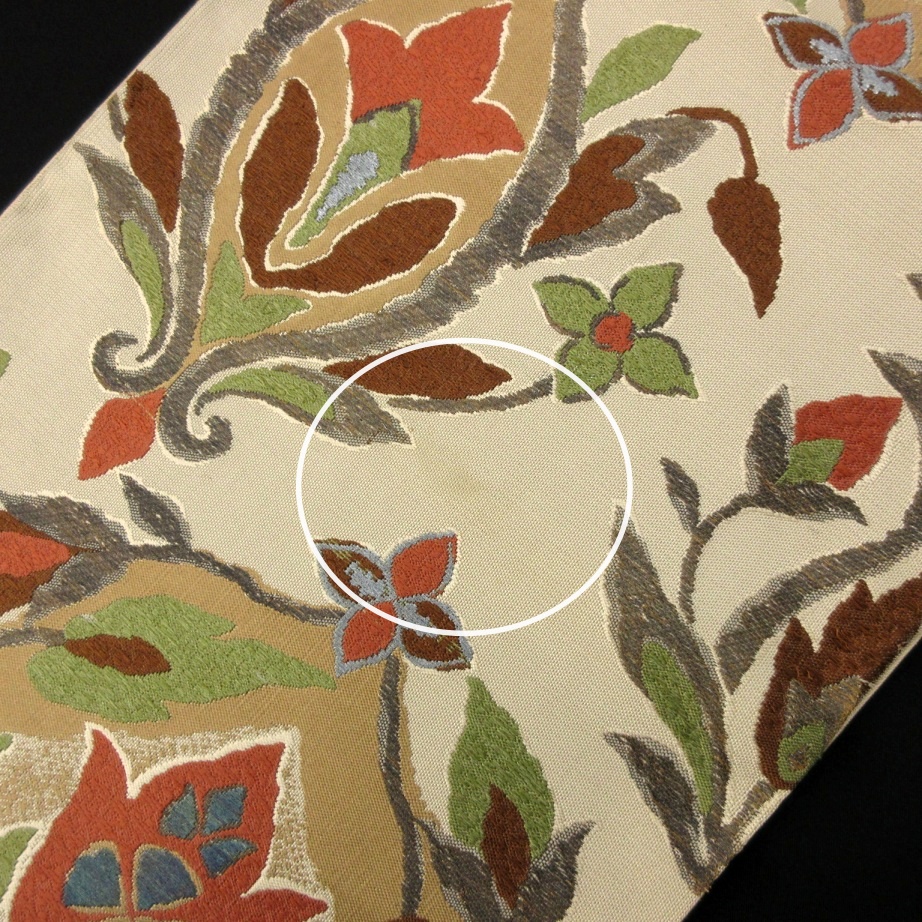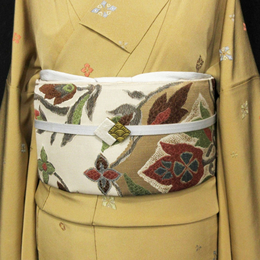■雅星■レトロ!!ベージュ*オリエンタル♪正絹六通《本袋帯》 販売価格 24,800円 (税込) 購入数 \送料無料/ カートに入れる この商品について問い合わせる お気に入り 特定商取引法に基づく表記 商品詳細 状態ランク: ★★★ 表地と裏地が同生地の筒状ですので、帯の両耳がフラットですっきりしているのが特徴。 なのでより着姿が美しく、より軽くてしなやかな締め心地になります♪ 袋帯とはいえ、もっとカジュアルにお気軽にご着用頂けるともっとお楽しみの幅が広がります! ベージュベースにオリエンタル文様!! 現代からレトロ着物まで幅広く合わせて頂けるセミアンティーク本袋帯です。 画像の様な薄シミがありますが、ご着用には何ら問題はありません。 他に目立ったシミ汚れはありません、お気軽にお楽しみ頂けるコンディションです。 帯のみの価格で、着物・小物は含まれておりません。 サイズ・素材 長さ 30cm×415cm 素材 正絹 状態ランクについて ★★★★★ 超美品・新品・未使用品です。 ★★★★ 中古品ですがダメージの無いお品です。 ★★★ 薄ジミなどがありますが着用時には目立ちません。 ★★ 工夫次第で十分着用可能なお買い得品です ★ 大きめのシミがありますので、リメイク材料等にどうぞ。 _an